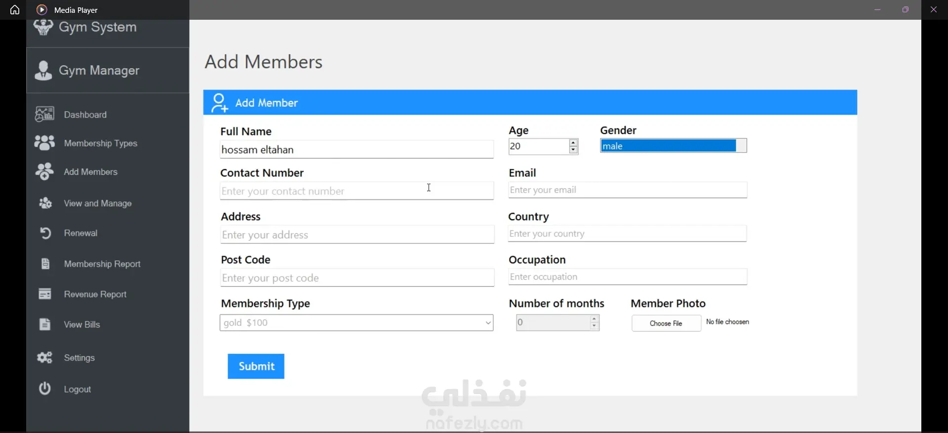 مشروع Gym Management System هو تطبيق سطح مكتب مصمم لتسهيل العمليات الإدارية داخل الجيم، حيث يتيح للموظفين إدارة بيانات الأعضاء بشكل منظم وفعال. يساعد النظام على تسجيل الأعضاء الجدد، تعديل بياناتهم، وحذف العضويات عند الحاجة، مما يوفر قاعدة بيانات دقيقة وسهلة الاستخدام. إلى جانب ذلك، يقوم النظام بمتابعة حضور الأعضاء من خلال تسجيل الدخول والخروج، مما يمكّن الإدارة من مراقبة التزام الأعضاء بالتمارين. كما يدعم النظام إدارة خطط الاشتراك المختلفة، سواء كانت شهرية أو سنوية أو مخصصة، وربطها بالأعضاء حسب احتياجاتهم. أيضًا يوفر النظام آلية لتسجيل المدفوعات والفواتير، مع تتبع المبالغ المتبقية أو المتأخرة، مما يسهل عملية الإدارة المالية داخل الجيم. علاوة على ذلك، يمكن للإدارة استخراج تقارير دورية تشمل بيانات العضويات، الحضور، والإيرادات، مما يساعد في تحسين اتخاذ القرارات. الوظائف الأساسية: إدارة بيانات الأعضاء وتحديثها. تسجيل الحضور والخروج للأعضاء. إدارة خطط الاشتراك والعضويات. متابعة المدفوعات والفواتير. إنشاء تقارير مالية وإدارية. الأدوات والتقنيات: لغة البرمجة: C# بيئة التطوير: Visual Studio قاعدة البيانات: SQL Server الواجهة الرسومية: Windows Forms
