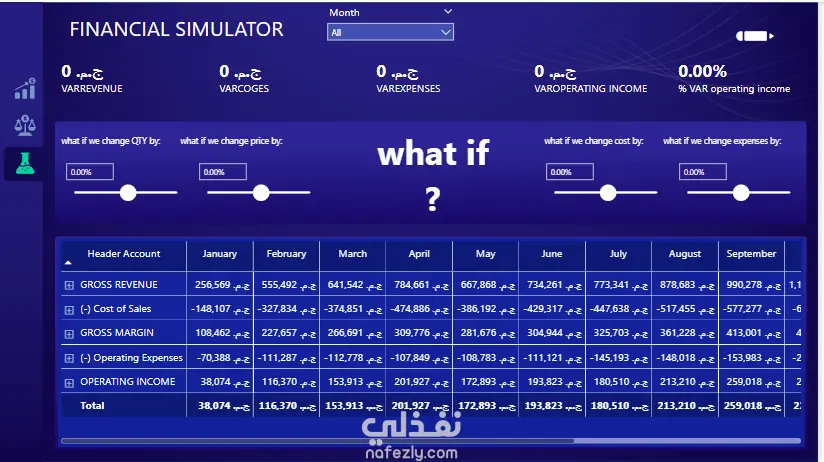 عمل تحليل الايرادت والربح } عمل قائمة الدخل على POWER BI عمل توقع تغير فى الكمية والسعر والمصروفات وتاثيرة على الربح ام خسارة