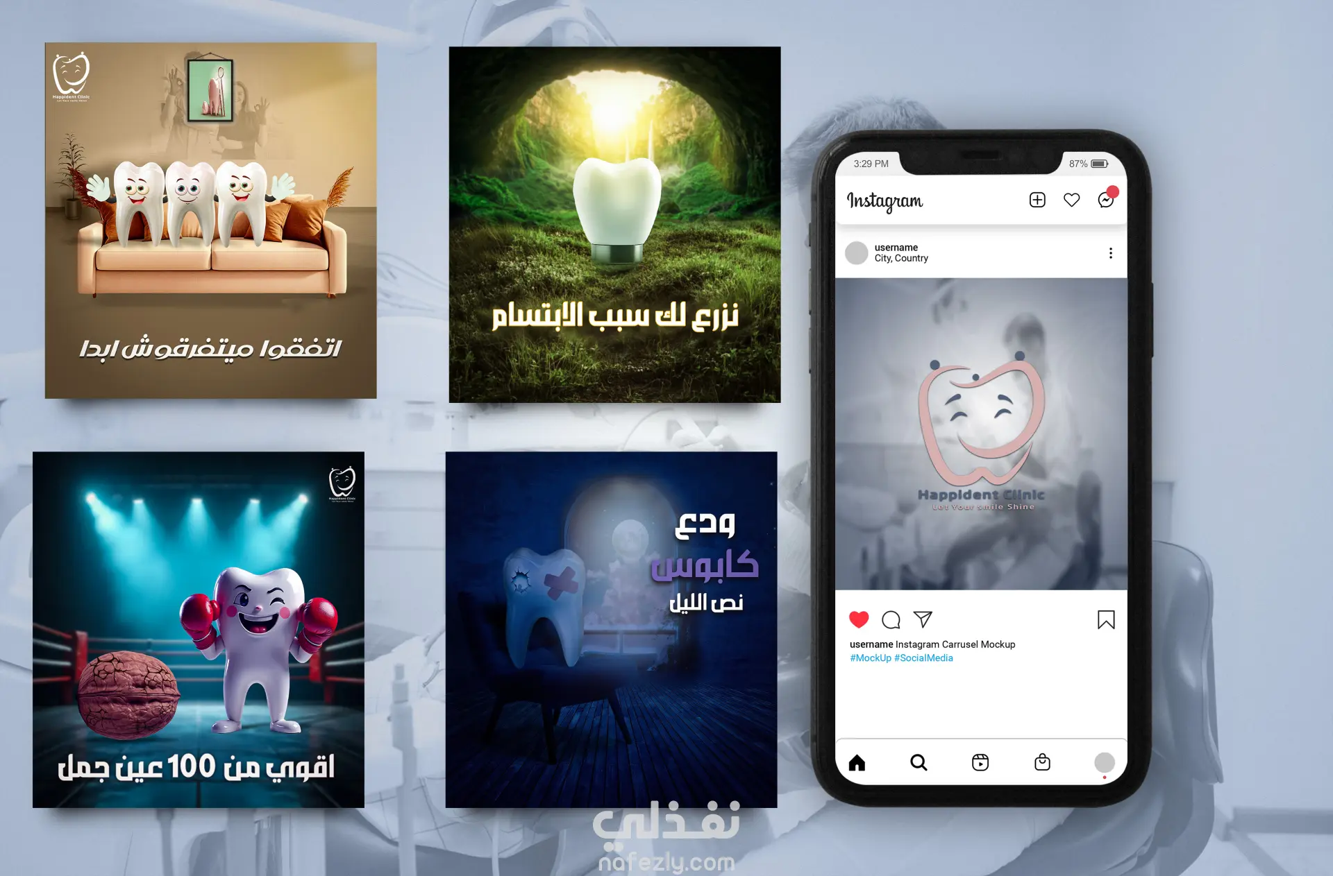 عمل 4 بوستات سوشيال ميديا لعيادة دكتور اسنان happident clinic