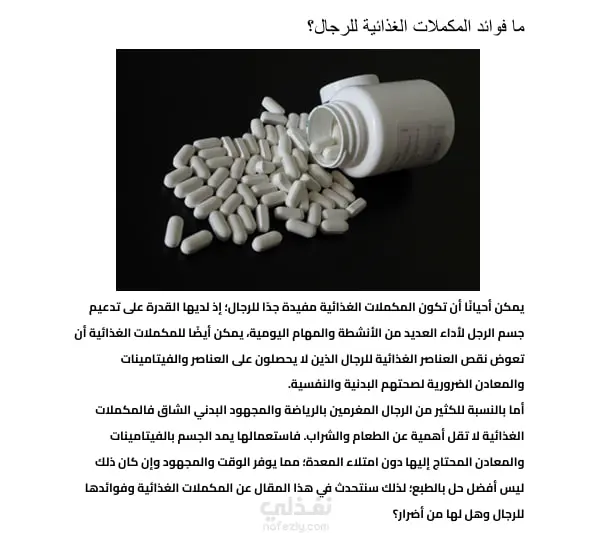 مقالة طبية منشورة عن المكملات الغذائية المهمة لصحة الرجال