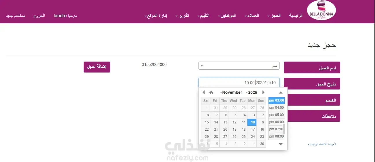 موقع تفاعلي لصالون تجميل يحتوي على العديد من الخدمات والوظائف إدارة الموقع : ويمكن من خلالها إضافة خدمات جديدة أو إضافة فروع جديدة أو مستخدمين جدد ويمكن أيضا إضافة عملاء جدد أو موظفين جدد ويحتوي الموقع على نظام تقييم يستخدمه العملاء لتقييم الخدمة والموظفين في المكان ويحتوي الموقع أيضا على تقارير شاملة لحجوزات العملاء وعمولة الموظفين والإيرادات والمصروفات الكلية الحجز : حيث يمكن للعملاء إجراء حجز موعد على الموقع في تاريخ معين ووقت معين
