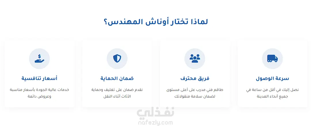 موقع تعريفي ومعرض اعمال خاص بونش المهندس لنقل ورفع الاثاث