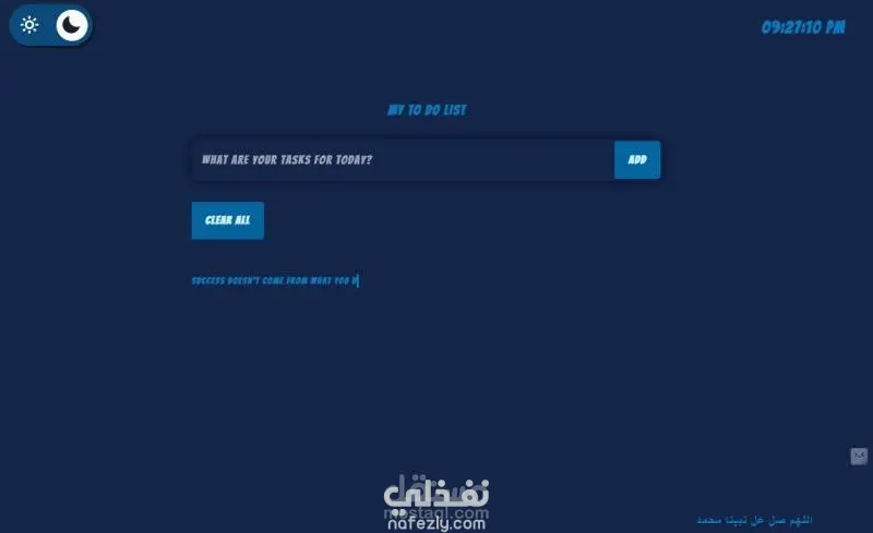 تطبيق ويب تفاعلي لإدارة المهام اليومية يتميز بتصميم بسيط وسهل الاستخدام. يتيح للمستخدمين إضافة المهام، تعديلها، وحذفها لتتبع نشاطاتهم اليومية بشكل منظم. Frontend: [HTML | CSS | JavaScript | bootstrap | css3 tailwind]. Deployment: Vercel.