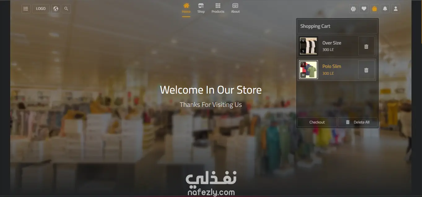 موقع متجر إلكتروني (متجر مستنسخ من Amazon) وظائف الموقع : عرض المنتجات في الصفحة الرئيسية (مثل Amazon). إمكانية اختيار أو استعراض تفاصيل المنتجات (صورة، السعر …). سلة مشتريات (Cart) لإضافة وإزالة المنتجات. تصميم متجاوب (يعمل على الحاسوب والموبايل). خاصية تسجيل دخول أو شراء
