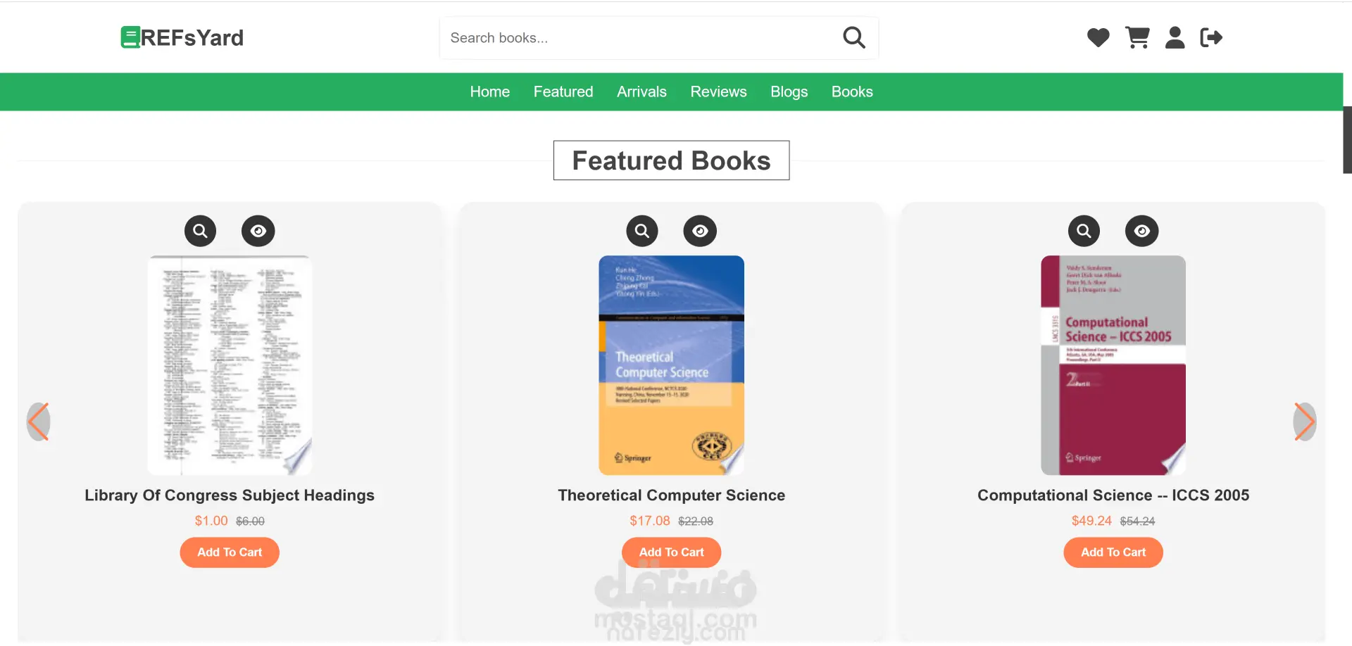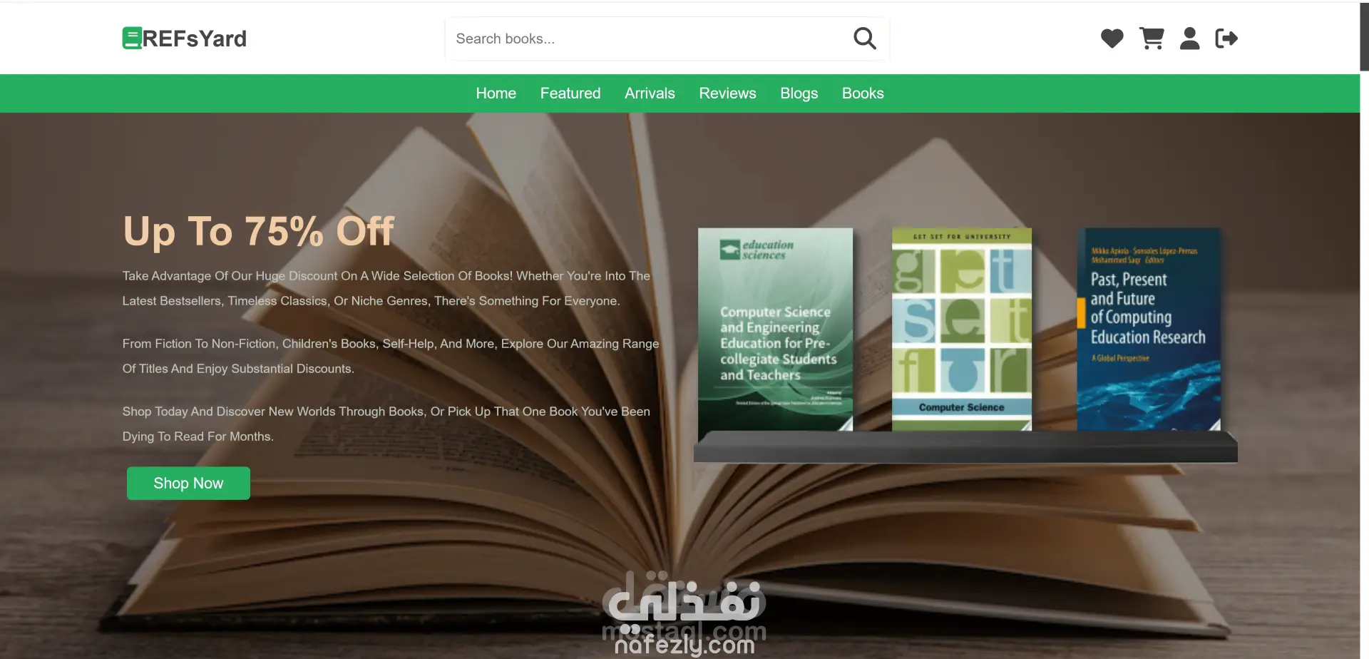 قمت بتطوير موقع إلكتروني متكامل لشراء الكتب باسم RefsYard باستخدام PHP و MySQL و HTML و CSS و JavaScript.