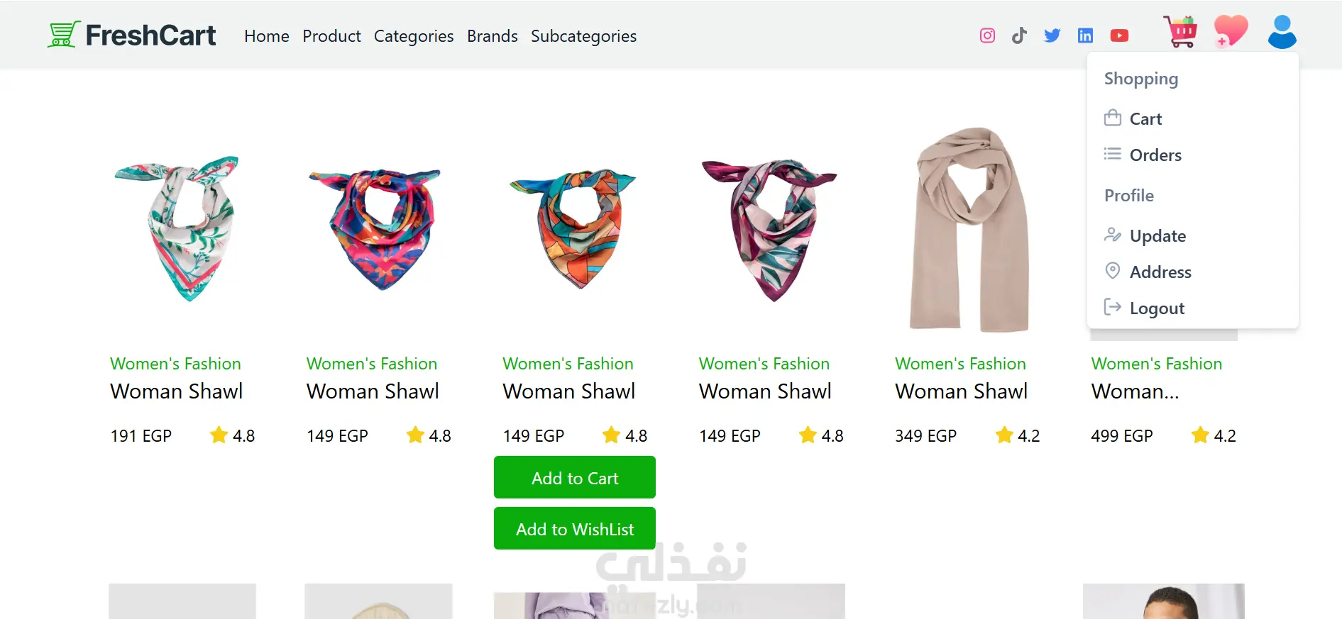 موقع للتسوق تم تطوير واجهته الأمامية باستخدام Angular و Tailwind CSS، يتيح للمستخدمين القيام بالمهام التالية: - عرض المنتجات المتاحة وإضافة المنتجات إلى العربة. - إتمام عملية الشراء عبر الدفع أونلاين أو كاش عند الاستلام. - تعديل بيانات الحساب الشخصي وإضافة عنوان جديد. - تغيير كلمة المرور الخاصة بالمستخدم.