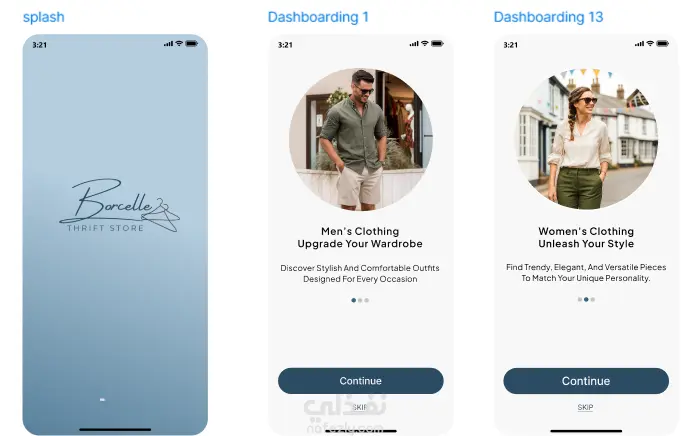 صميم UI/UX متكامل لتطبيق تجارة إلكترونية (E-commerce App) متخصص في بيع الملابس العصرية.