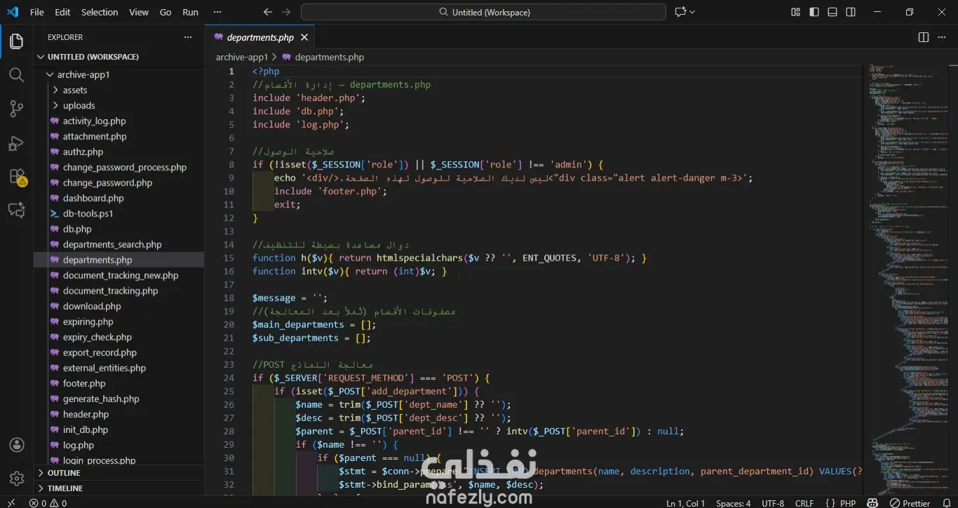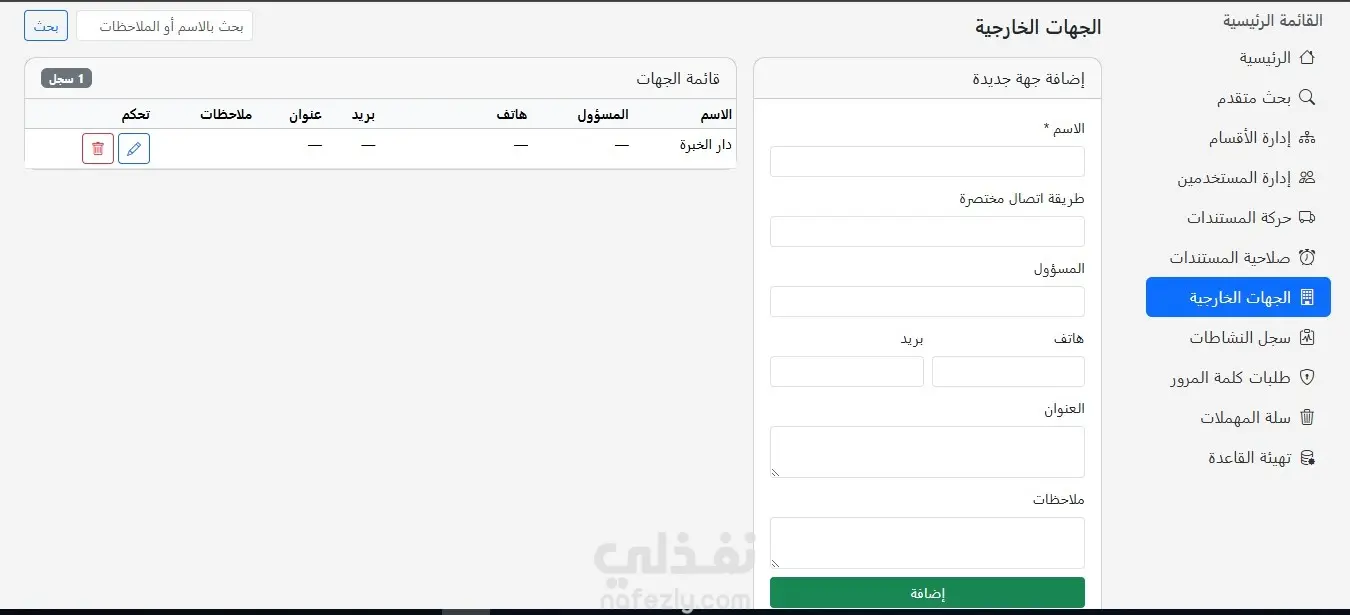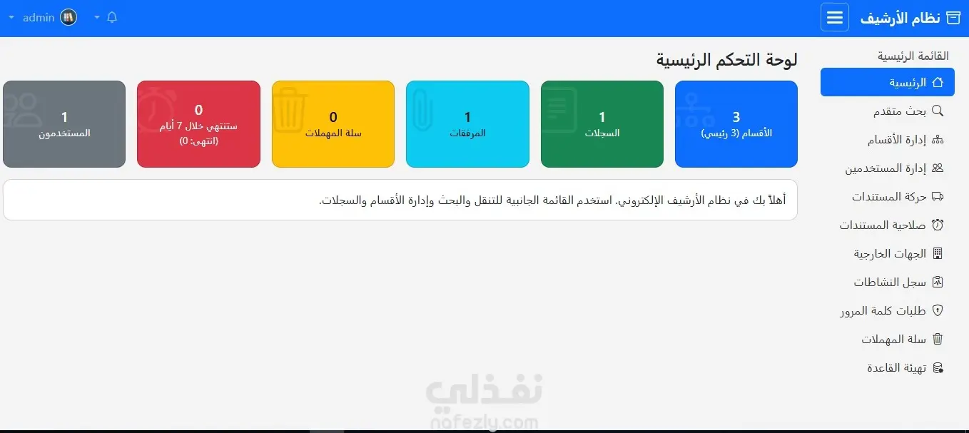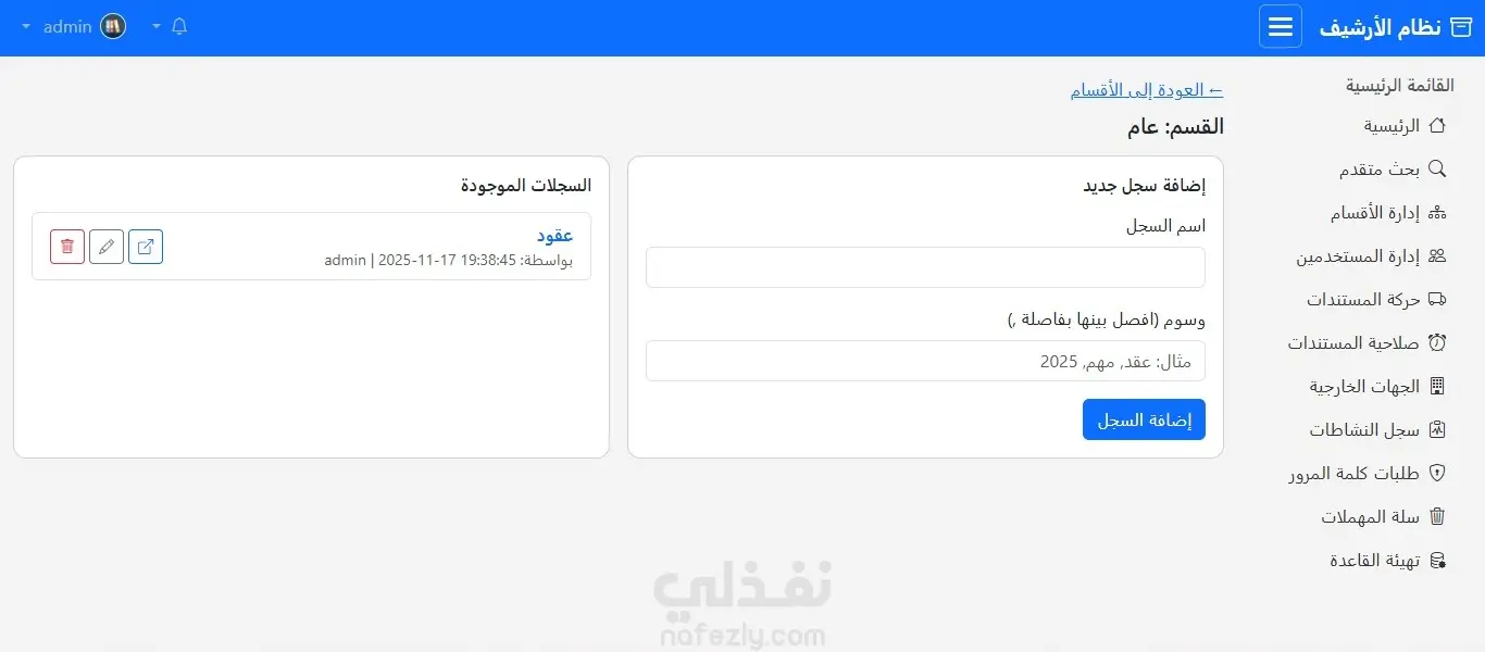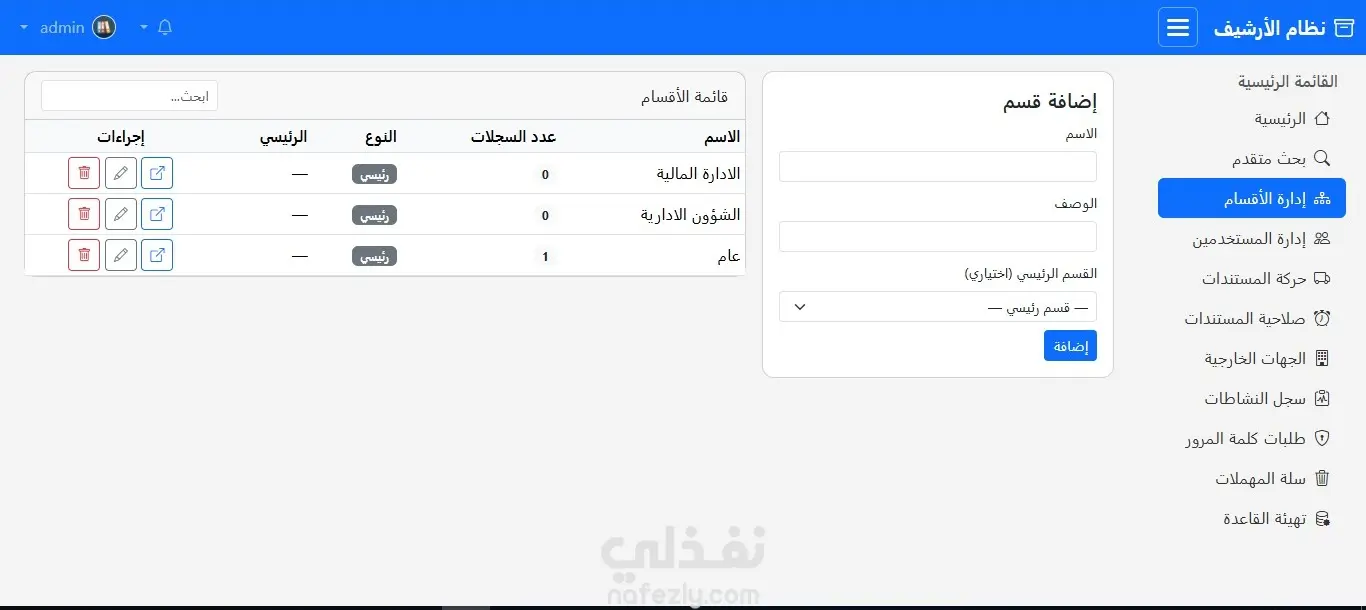 هيكل تنظيمي مرن: بناء هيكل إداري للأقسام الرئيسية والفرعية، مع إدارة السجلات الخاصة بها ودعم إضافة مرفقات متعددة مثل PDF وWord وExcel والصور.
