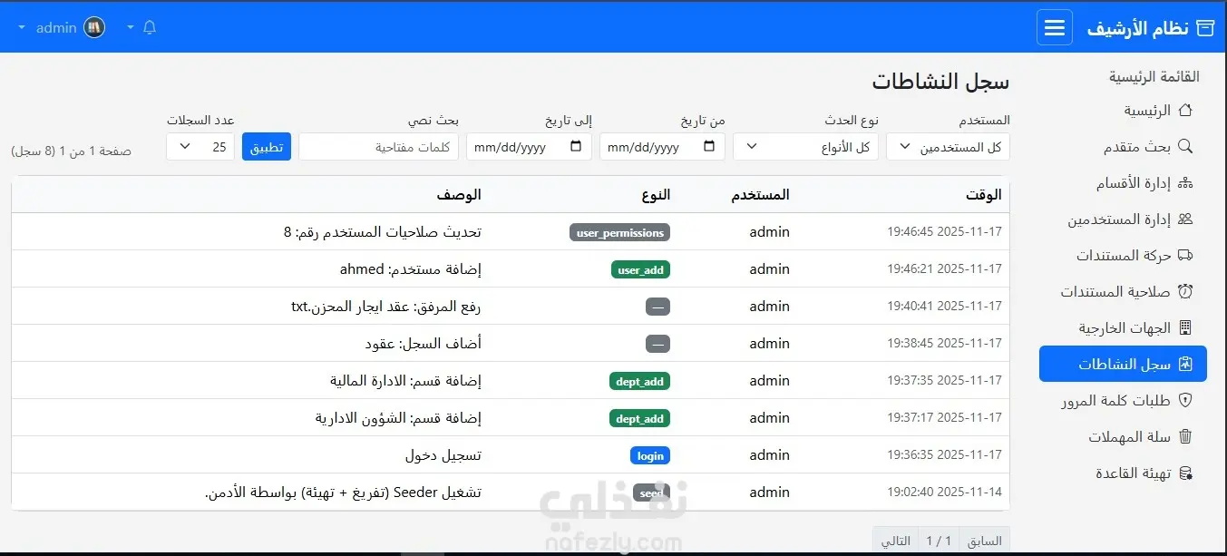 تم تطوير نظام أرشفة إلكتروني متكامل (Document Management System) يهدف إلى مركزية المستندات داخل المؤسسة، وتحويل الأرشيف الورقي إلى بيئة رقمية آمنة وسهلة الاستخدام. يوفر النظام أدوات متقدمة لإدارة السجلات وتتبعها، مع التركيز على سهولة الوصول وسرعة البحث وحماية البيانات.