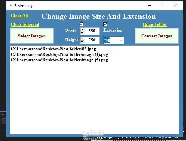 تطبيق مكتبي تم تطويره باستخدام C# وتقنية Windows Forms، مخصص لمعالجة مجموعات كبيرة من الصور دفعة واحدة بطريقة بسيطة ومرنة. يهدف البرنامج إلى توفير الوقت وتقليل الجهد على المستخدم، خصوصاً في المهام المتكررة مثل تغيير أحجام الصور أو تحويل صيغها. أبرز وظائف التطبيق: المعالجة الدفعية للصور: اختيار عدد كبير من الصور وإضافتها إلى قائمة للعمل عليها مرة واحدة بدلاً من تعديل كل صورة بشكل منفصل. تغيير أبعاد الصور: تحديد عرض وارتفاع ثابتين ليتم تطبيقهما على جميع الصور المختارة بدقة وسهولة. تحويل صيغ الملفات: توحيد صيغة الإخراج لجميع الصور (مثل التحويل إلى JPG أو PNG). مرونة في الإعدادات: إمكانية تفعيل أو إلغاء كل وظيفة بشكل مستقل، سواء تغيير الحجم أو تحويل الصيغة. واجهة استخدام واضحة: مزودة بخيارات مثل "مسح الكل"، "إزالة المحدد"، و"فتح المجلد" للوصول السريع للصور الناتجة.