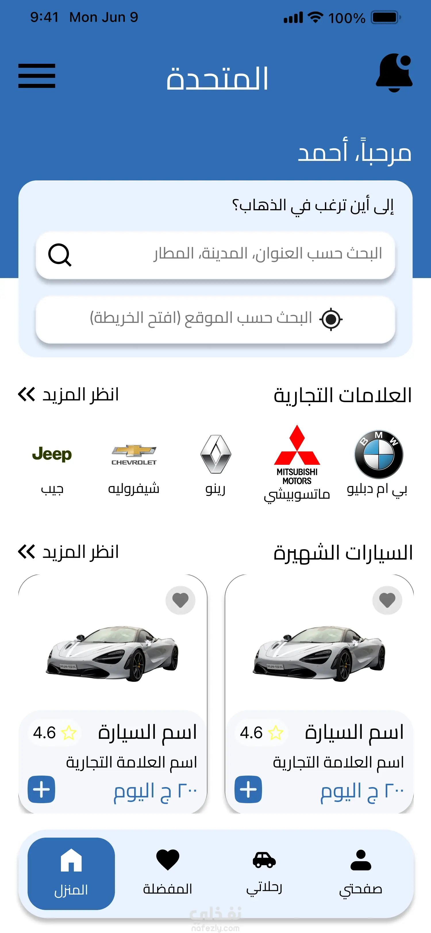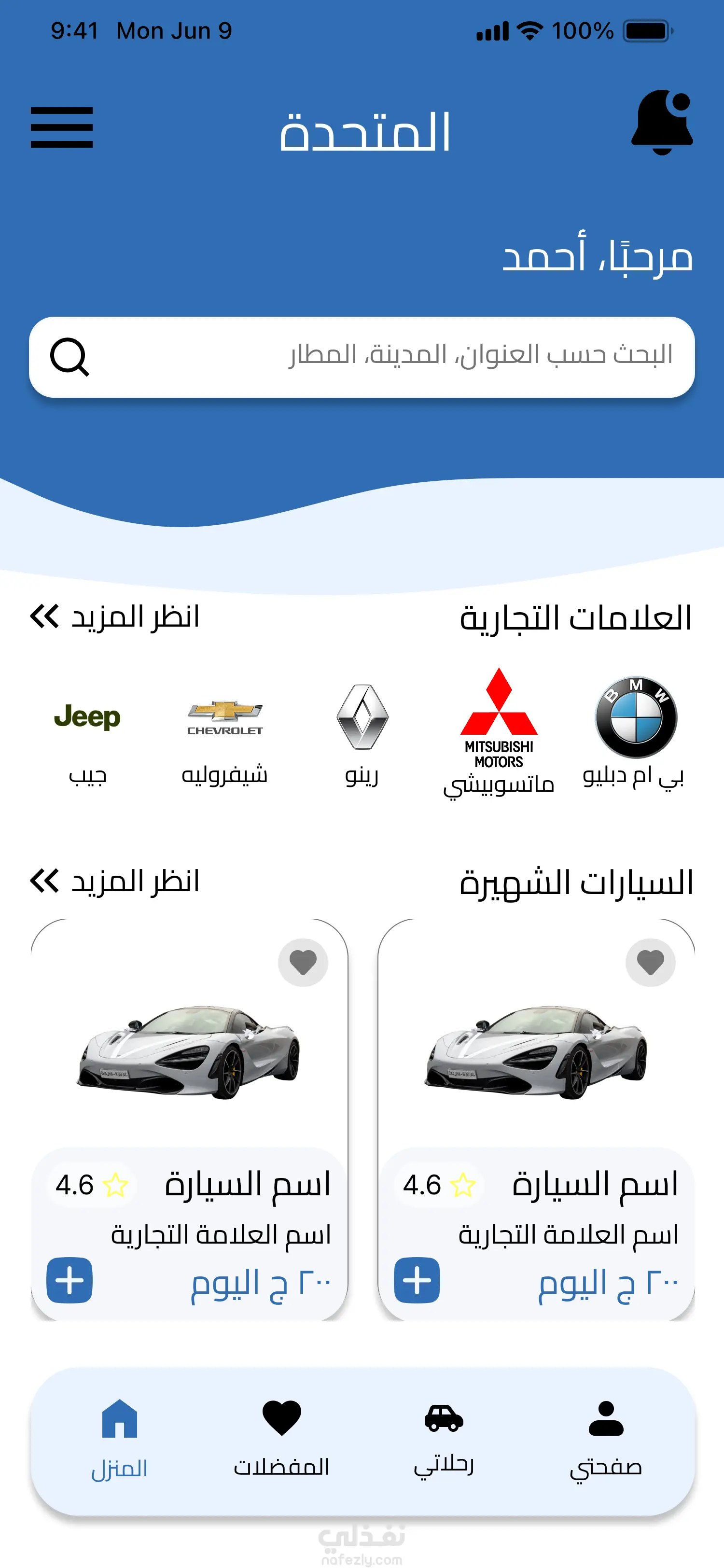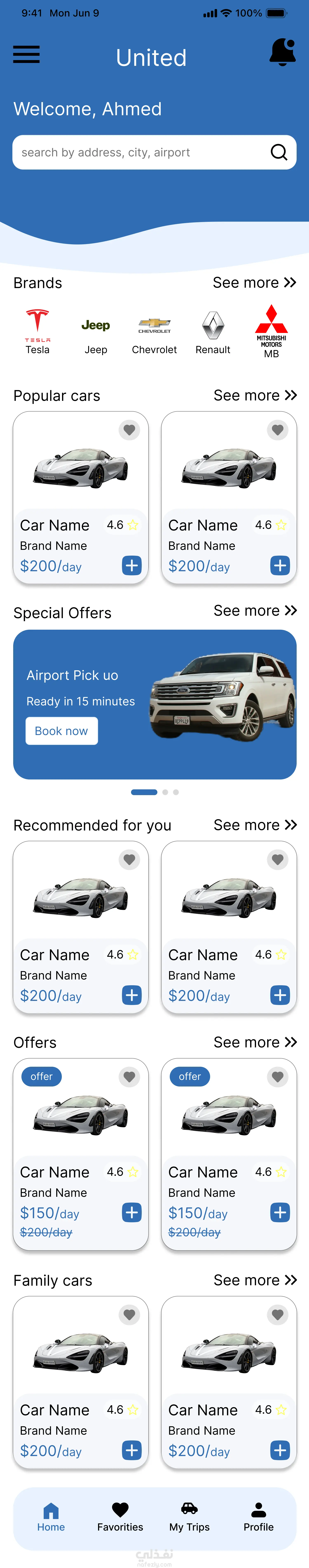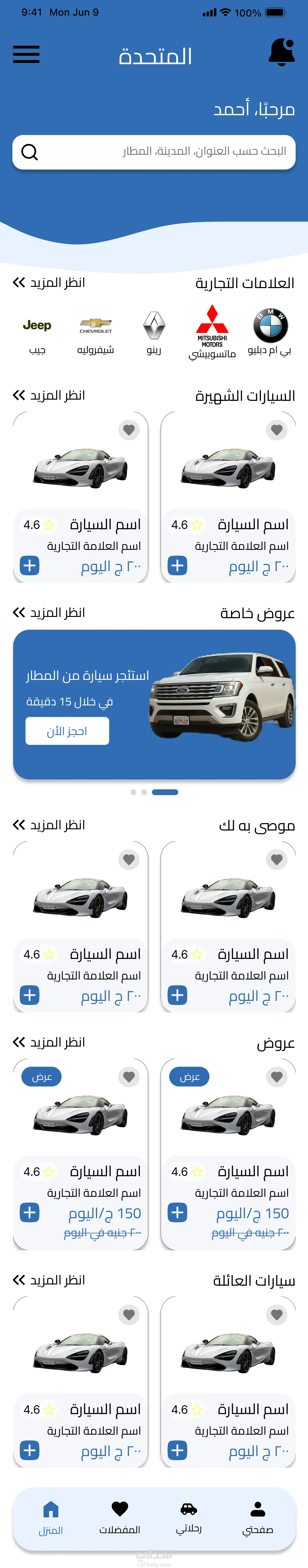تصميم شاشة احترافية لتطبيق تأجير سيارات (UI/UX)