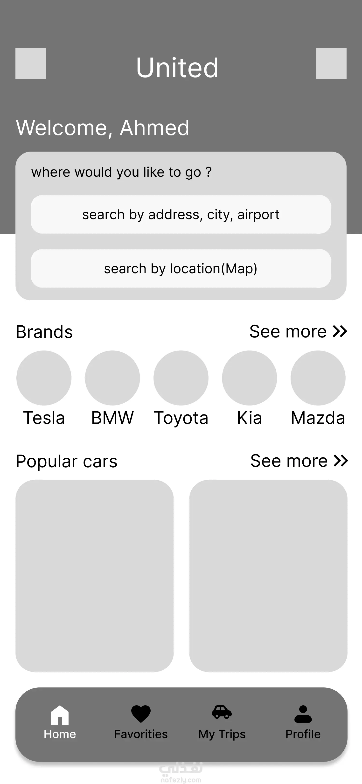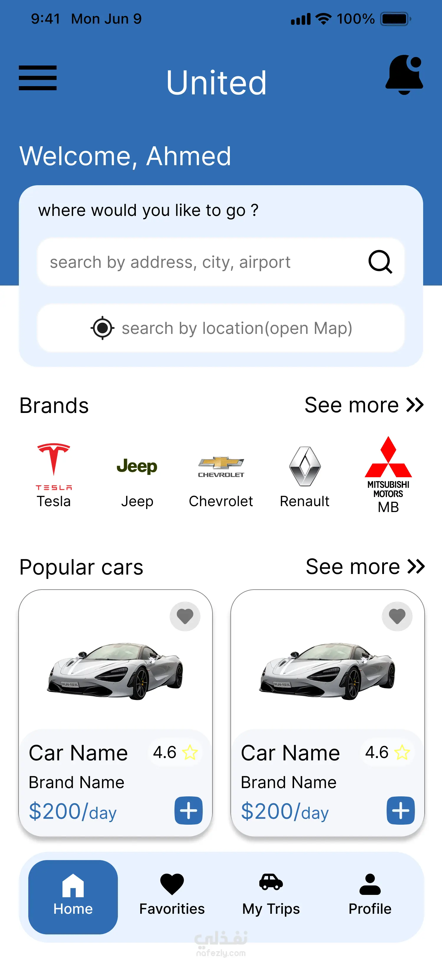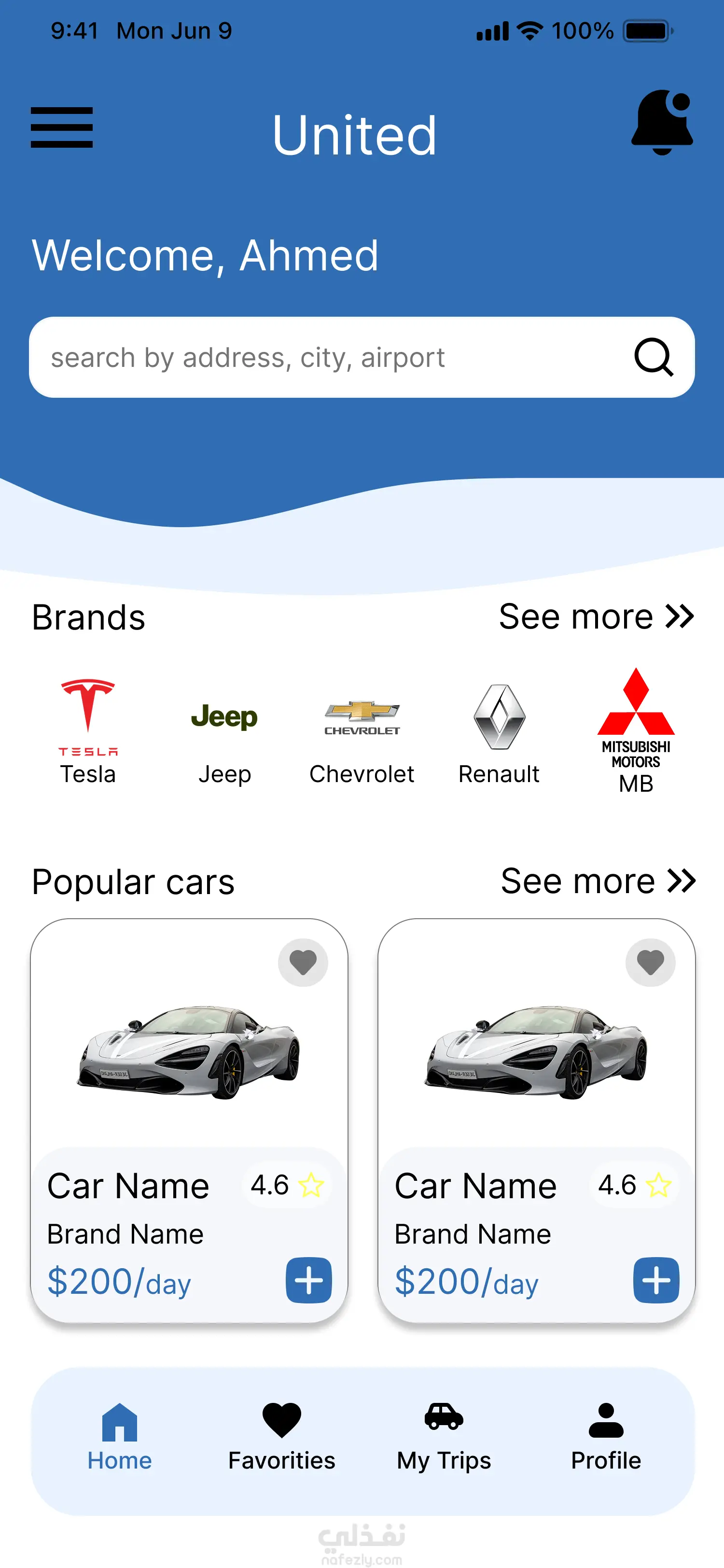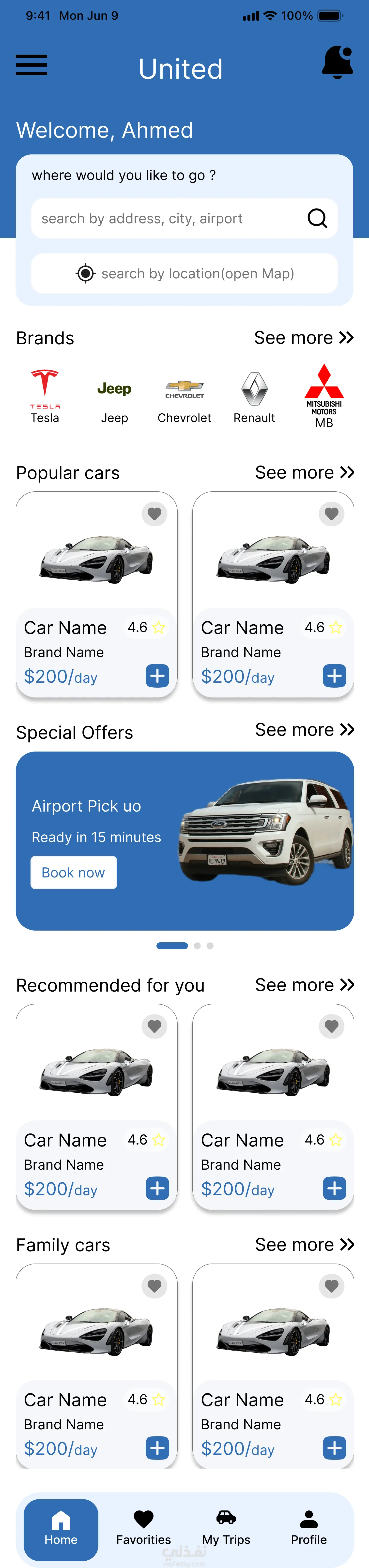 تصميم شاشة احترافية لتطبيق تأجير سيارات (UI/UX)
