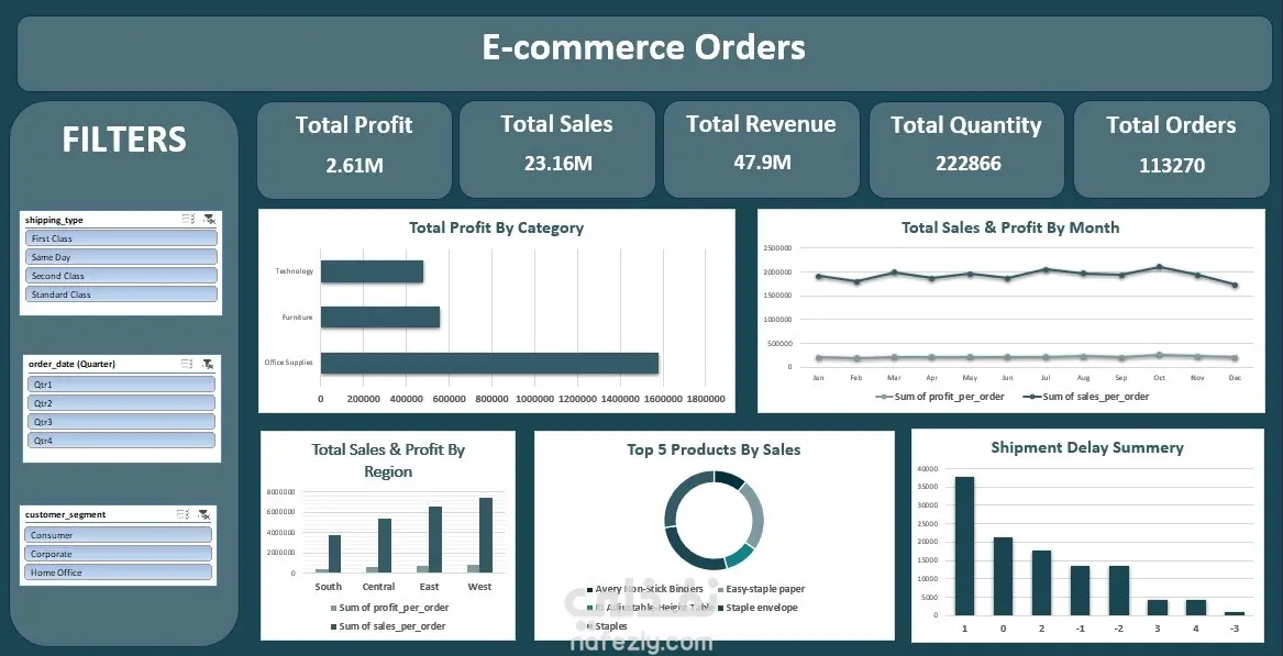 هذه لوحة تحكم تفاعلية توفر رؤية شاملة لأداء المبيعات في مجال التجارة الإلكترونية. تم تصميمها خصيصًا لمساعدة المديرين وأصحاب الأعمال على اتخاذ قرارات مبنية على البيانات لتحسين الأرباح والكفاءة التشغيلية.