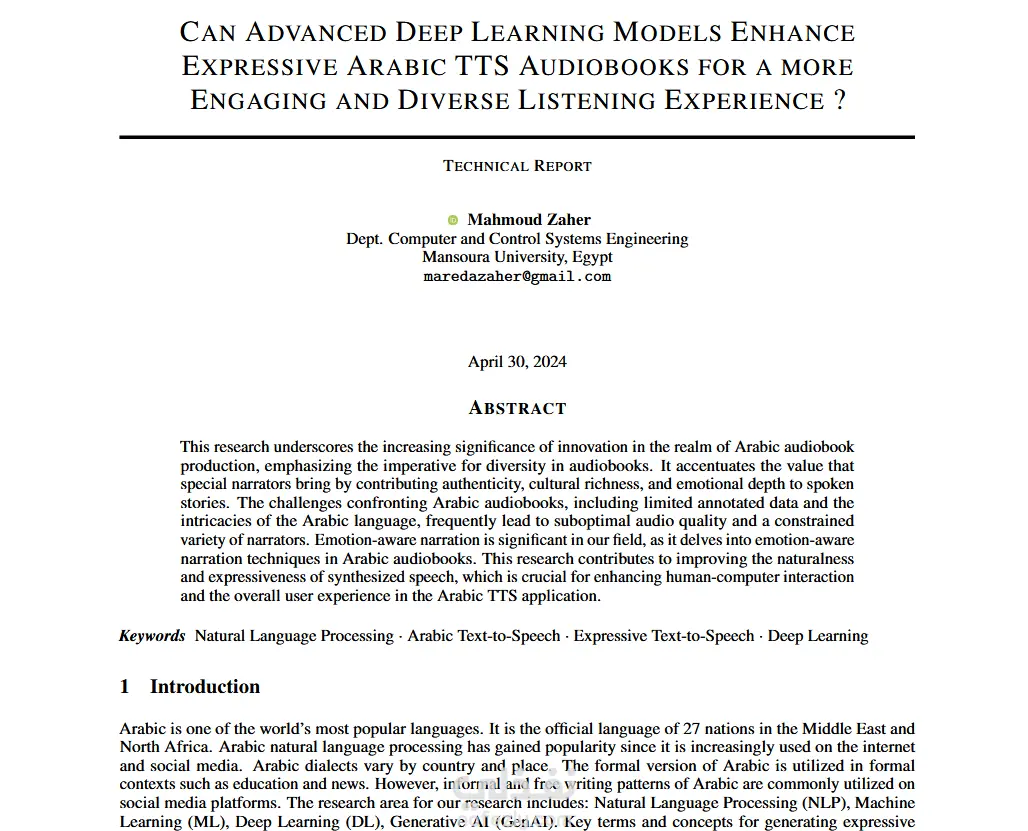 narration techniques in Arabic audiobooks. This research contributes to improving the naturalness