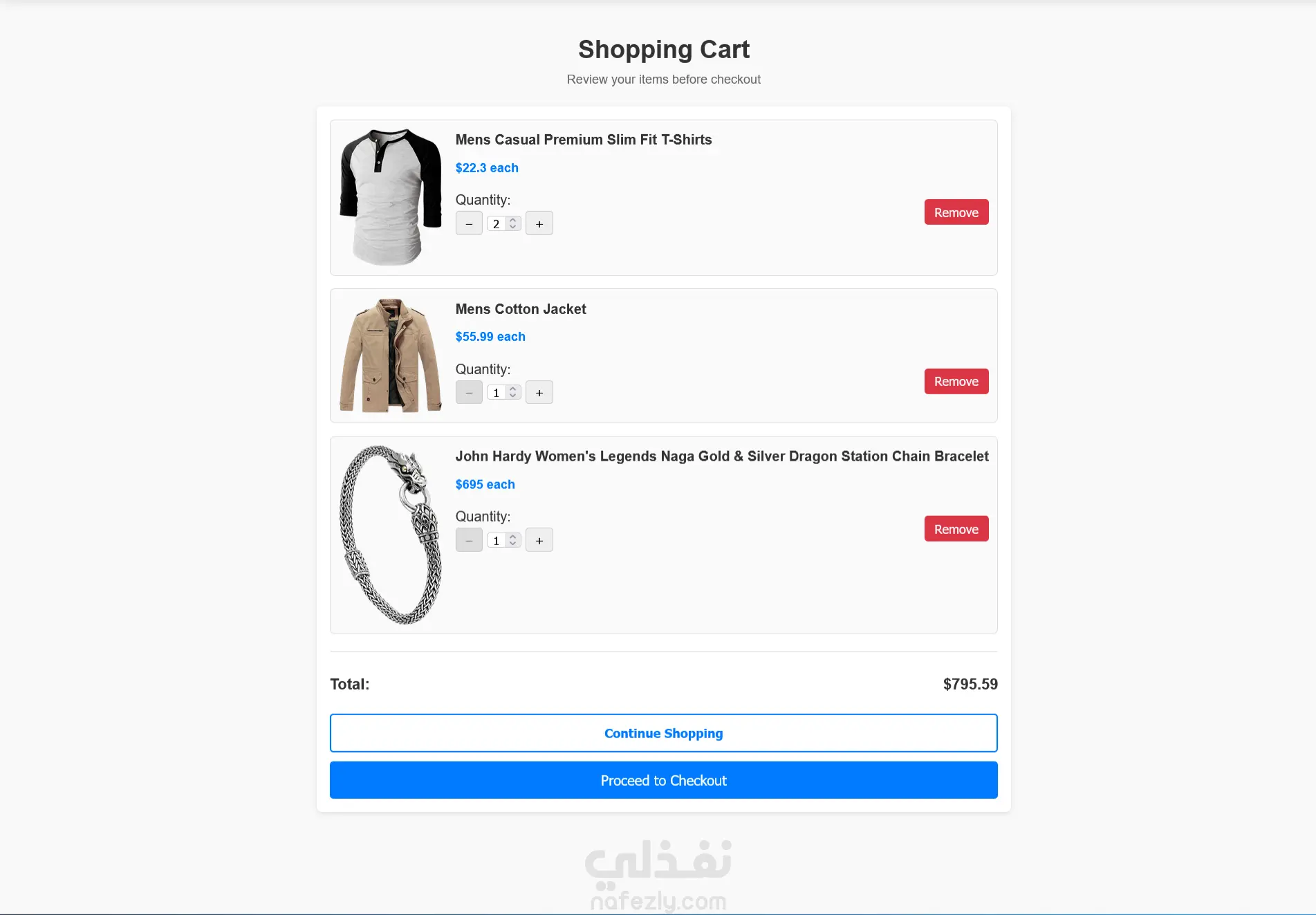 - مشاهدة التحديثات الفورية لإجمالي الأسعار وعدد المنتجات في السلة.