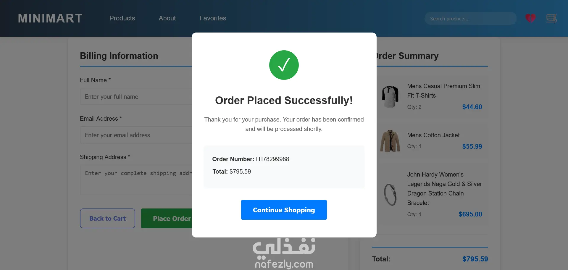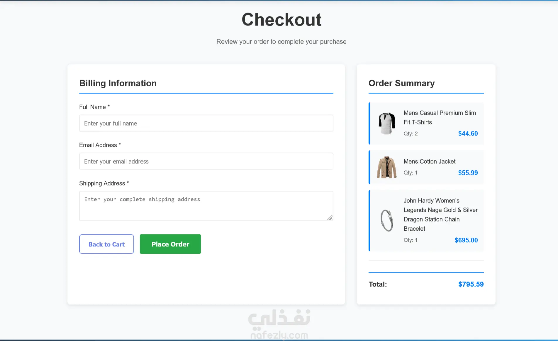 - إكمال عملية الدفع مع التحقق من صحة البيانات في نموذج الشراء.