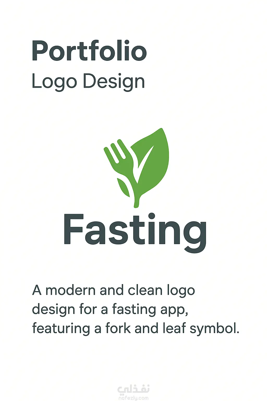 تصميم شعار بسيط وعصري لتطبيق خاص بالصيام (Fasting App). التصميم يجب ان يكون نظيف ومفهوم، ويركّز على أسلوب حياة صحي. ويجب الدمج بين رمز يُمثّل الأكل مثل شوكة، مع عنصر طبيعي مثل ورقة نبات، لكي يعطي إحساس بالنظافة والصحة والانضباط. الألوان يفضَّل تكون هادئة وطبيعية مثل الأخضر أو الرمادي الغامق. الهدف هو شعار احترافي، خفيف، وسهل التعرّف عليه.”