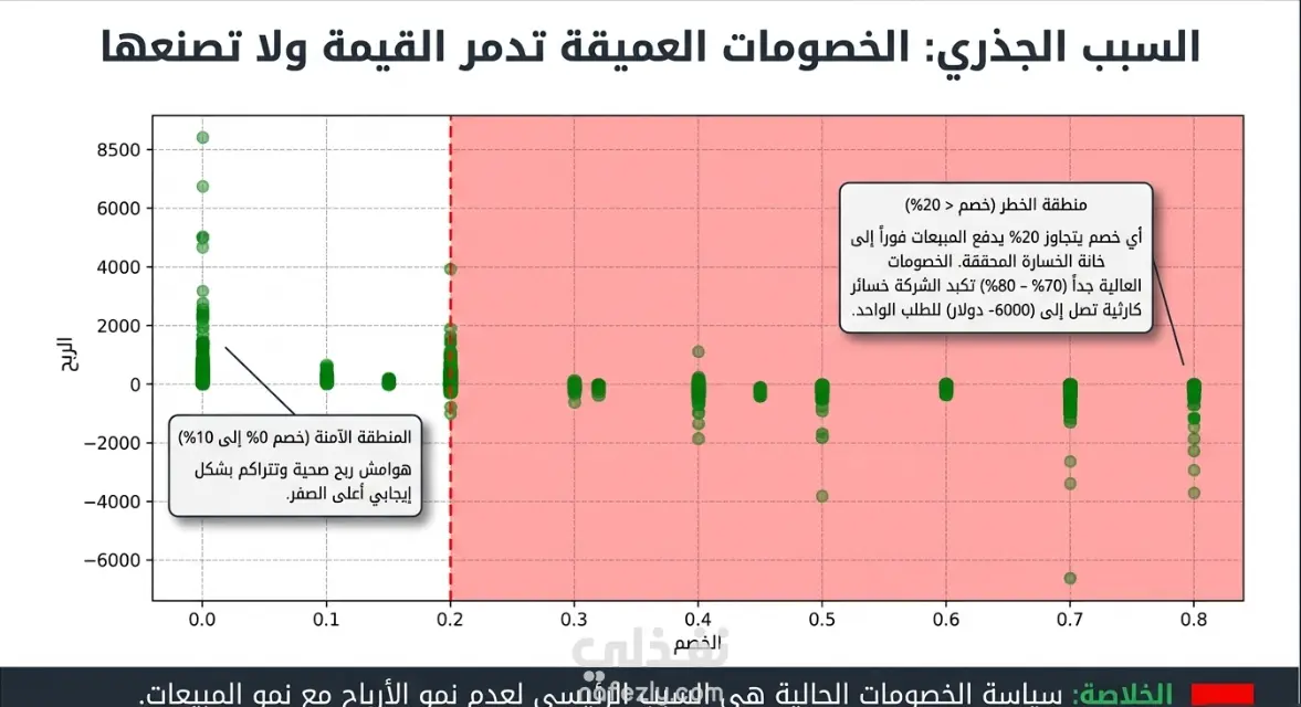 تحليل بيانات متقدم وبناء نماذج تعلم آلي (ML) تم تطوير نموذج تنبؤي (Predictive Model) مخصص لتحليل بيانات المبيعات التاريخية وتحديد العوامل الأكثر تأثيراً في صافي الأرباح والخسائر للشركات والمتاجر الكبرى (بناءً على مجموعة بيانات Superstore). الهدف هو تحويل البيانات الخام إلى رؤى مالية قابلة للتطبيق لدعم القرارات الإدارية. المخرجات والإنجازات: بناء نموذج الانحدار (Regression Model): تم تدريب نموذج تعلم آلي لتوقع صافي الربح بدقة عالية. اكتشاف الرؤى الحرجة: تحديد أن المبيعات (Sales) و الخصم (Discount) هما العاملان الأهم للتنبؤ بالربح تحليل الخسارة: تقديم تحليل بصري يثبت أن تطبيق خصومات تزيد عن 20% يؤدي إلى متوسط ربح سلبي (خسارة)، وهي معلومة حاسمة لتعديل سياسات التسعير والتخفيضات. التوثيق التقني: تسليم ملف كود Python موثق بالكامل وواضح يوضح جميع خطوات معالجة البيانات وبناء النموذج. الأدوات المستخدمة: Python، مكتبات Scikit-learn، Pandas، Matplotlib.
