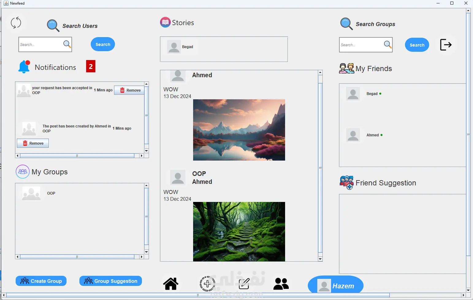 يُعد ConnectHub منصة تواصل اجتماعي تعاونية صُممت لتقريب المسافات وبناء علاقات هادفة، حيث تتيح للمستخدمين تجربة تفاعلية متكاملة تبدأ من التسجيل الآمن للوصول إلى "آخر الأخبار" ومشاركة المنشورات والقصص اليومية. يتميز المشروع بتوفير "مركز للأصدقاء" لإدارة طلبات الصداقة والحظر، إلى جانب إمكانيات إنشاء المجموعات، والبحث المتقدم، ونظام إشعارات فوري. وقد تكاتفت جهود فريق التطوير الرباعي (أحمد سعيد، حازم بركات، أدهم زكريا، وبيجاد محمد) لإنجاز هذا العمل، حيث توزعت مهامهم بين تطوير أنظمة المصادقة، وإدارة المحتوى والملفات الشخصية، وهيكلة المجموعات والبحث، مع تعاونهم جميعاً في دمج الواجهات الأمامية لضمان تجربة مستخدم سلسة وبديهية.