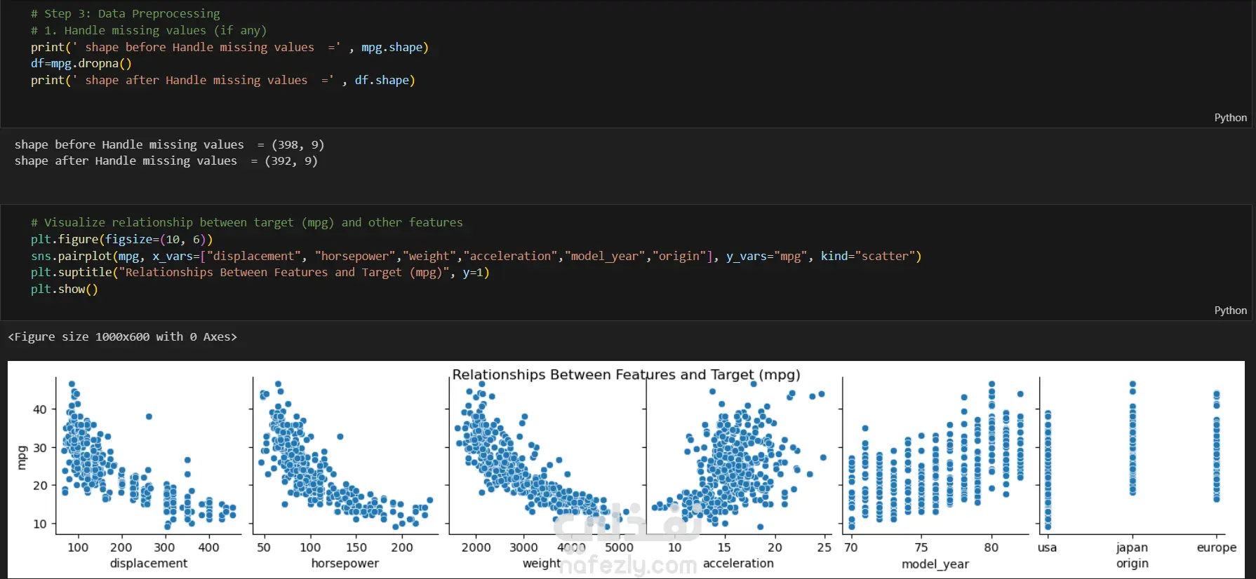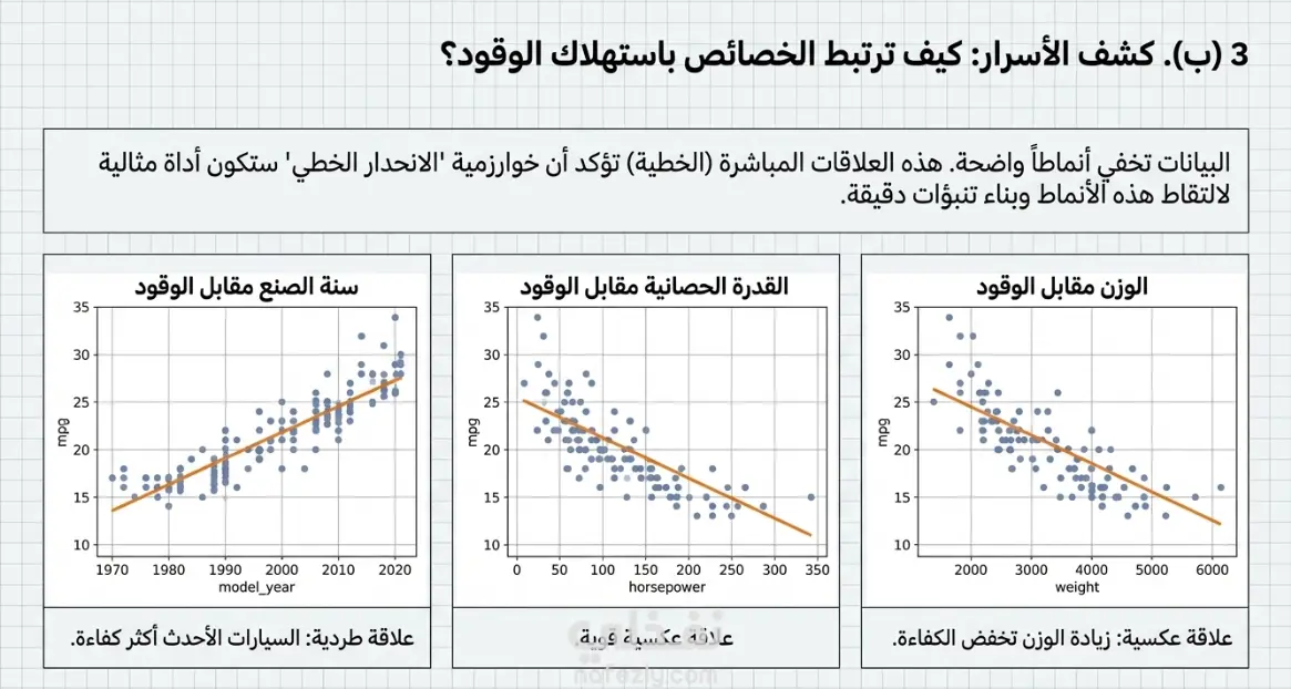 تطوير نموذج تعلم آلي لتوقع كفاءة استهلاك الوقود للسيارات (MPG) بدقة عالية