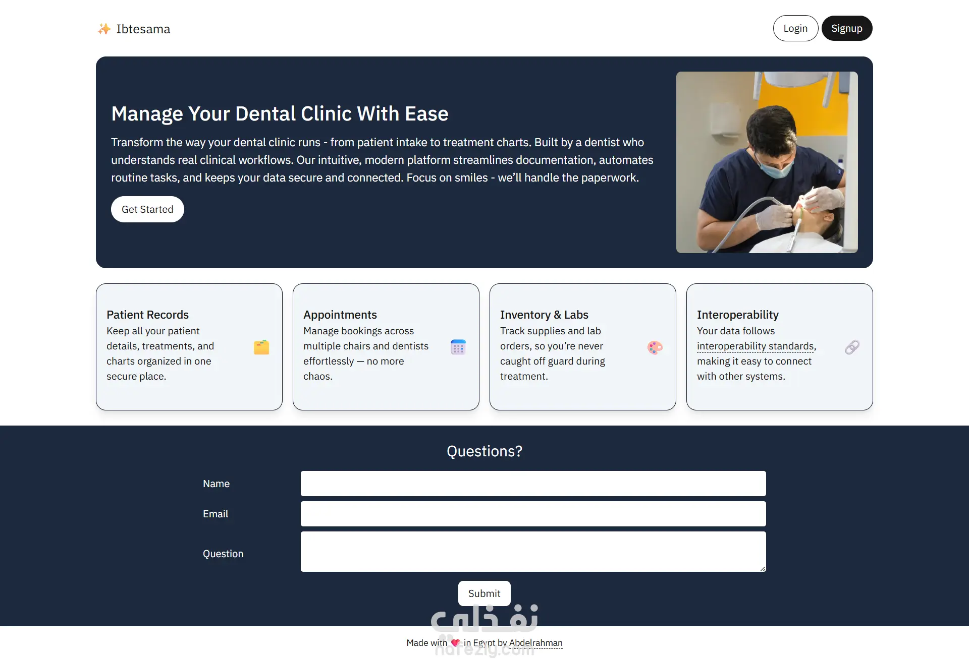 صفحة هبوط مدونة تم تطويرها بإستخدام HTML, CSS, TypeScript, React و Next.js [تم إستخدام Next.js لأن الصفحة جزء من مشروع أكبر].