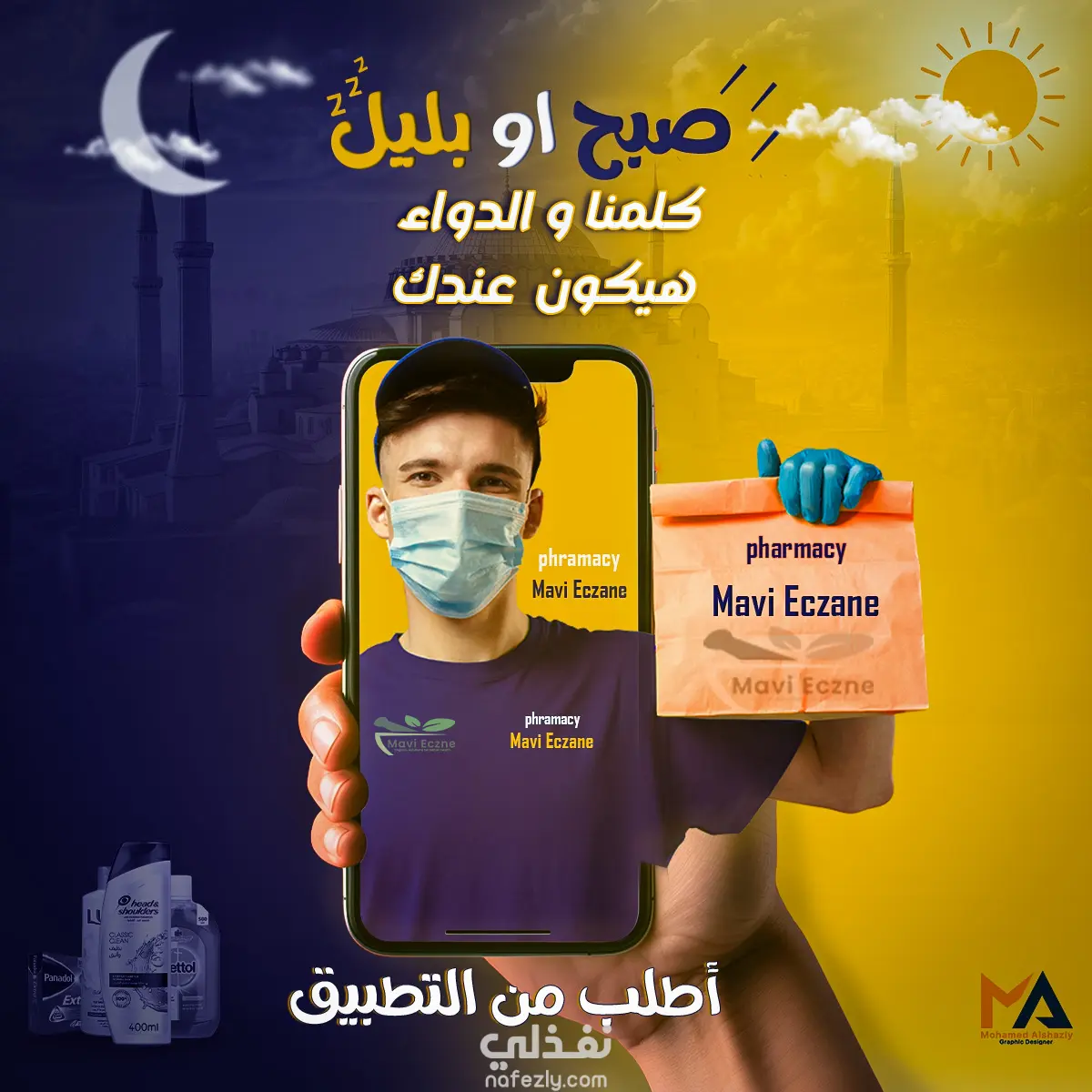 عمل 2 بوستات لصيدلية Mavi Eczne اختيار العناصر المناسبة لتصميم اختيار الالوان متناسبة اصبغاء دوله العميل