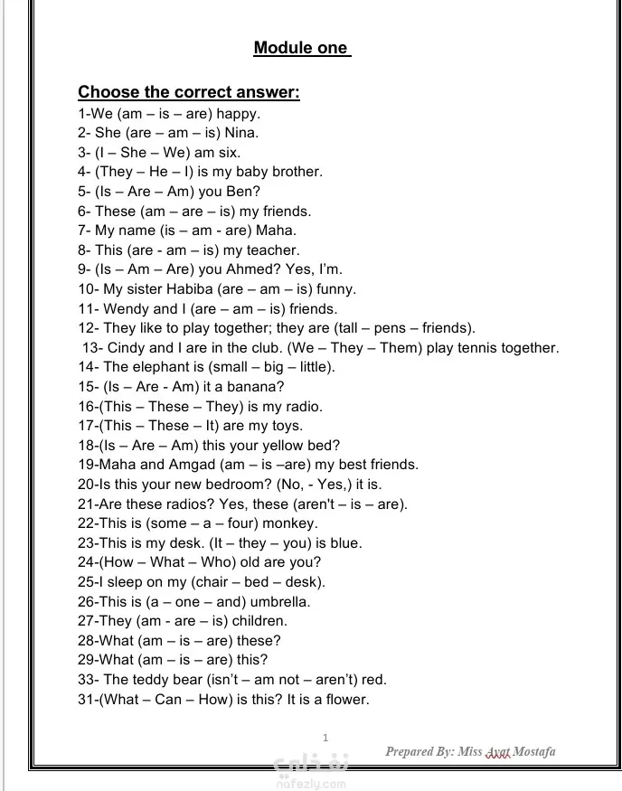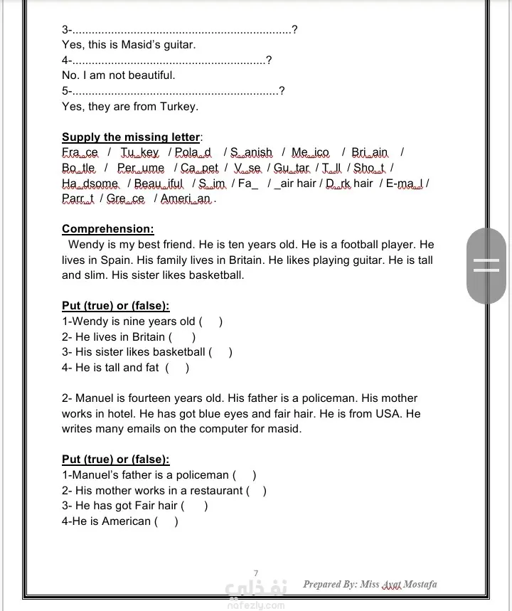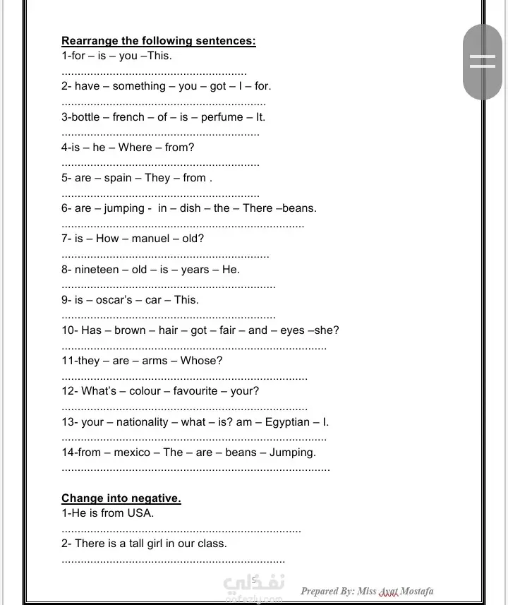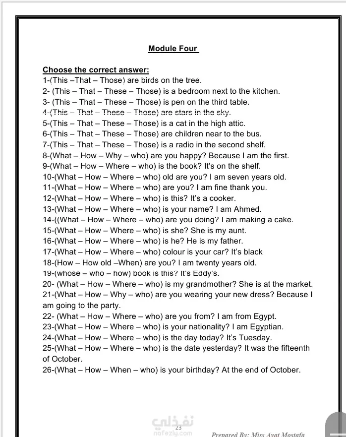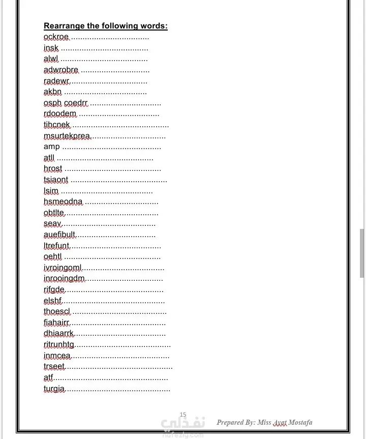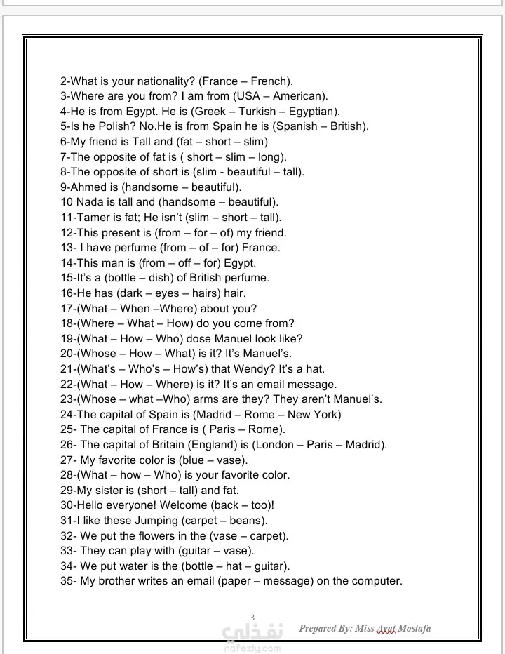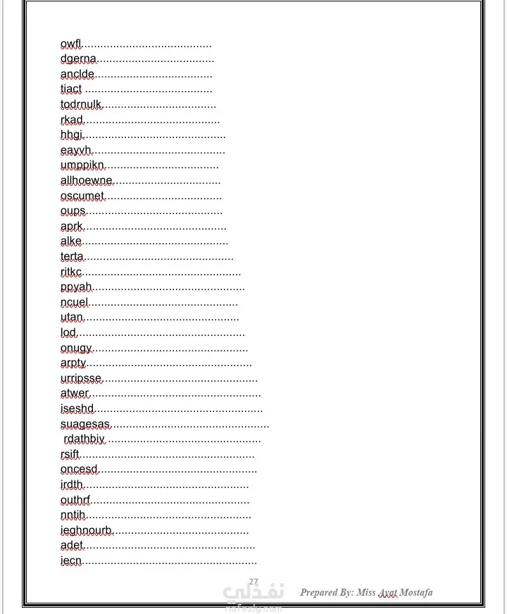 كتابة ملف خاص باللغة الإنجليزية مع المحافظة علي التصحيح اللغوي القواعد علامات الترقيم تنسيق الجمل تنسيق المسافات بين الأسئلة وبعضها