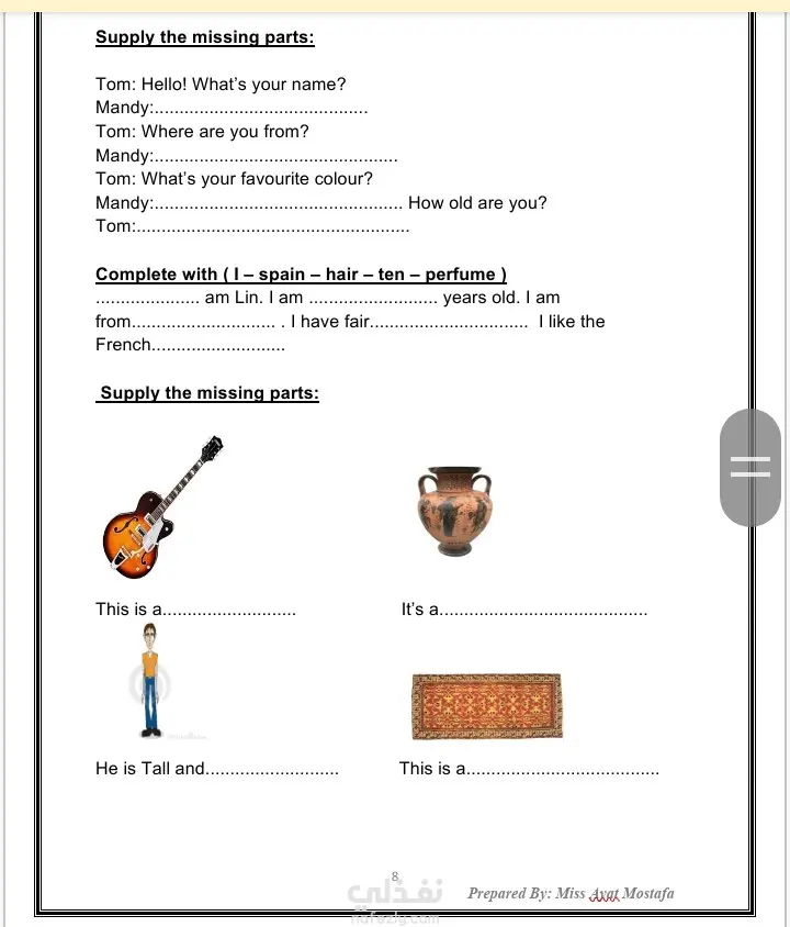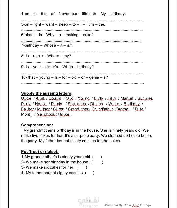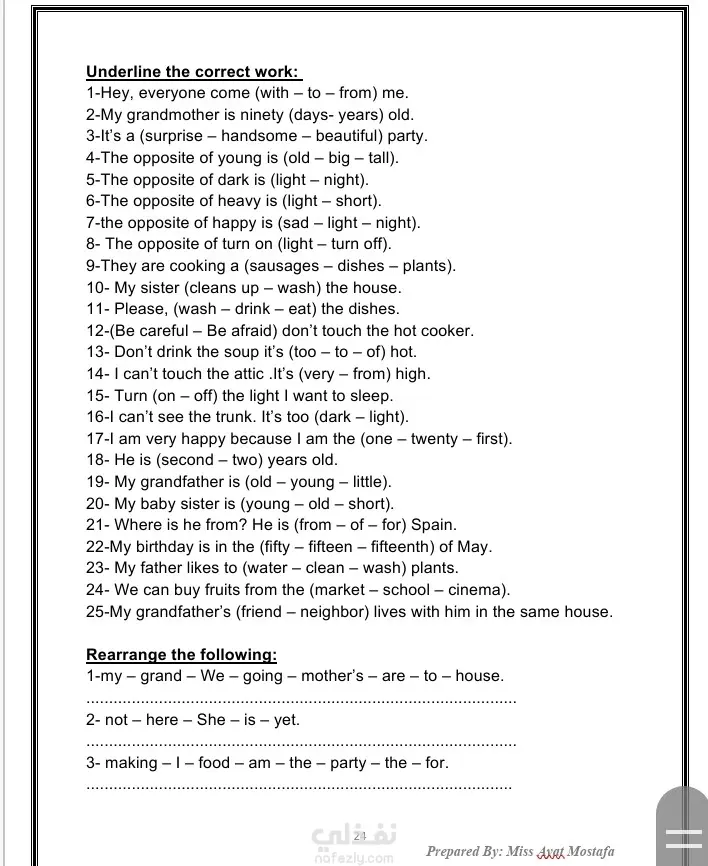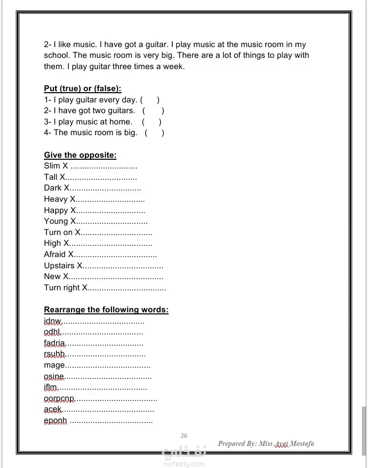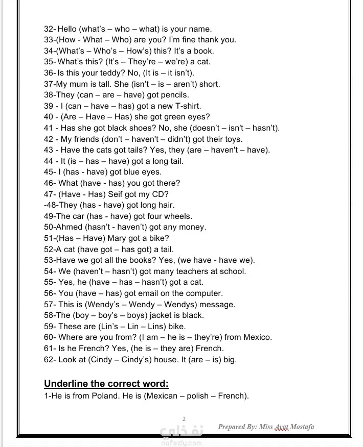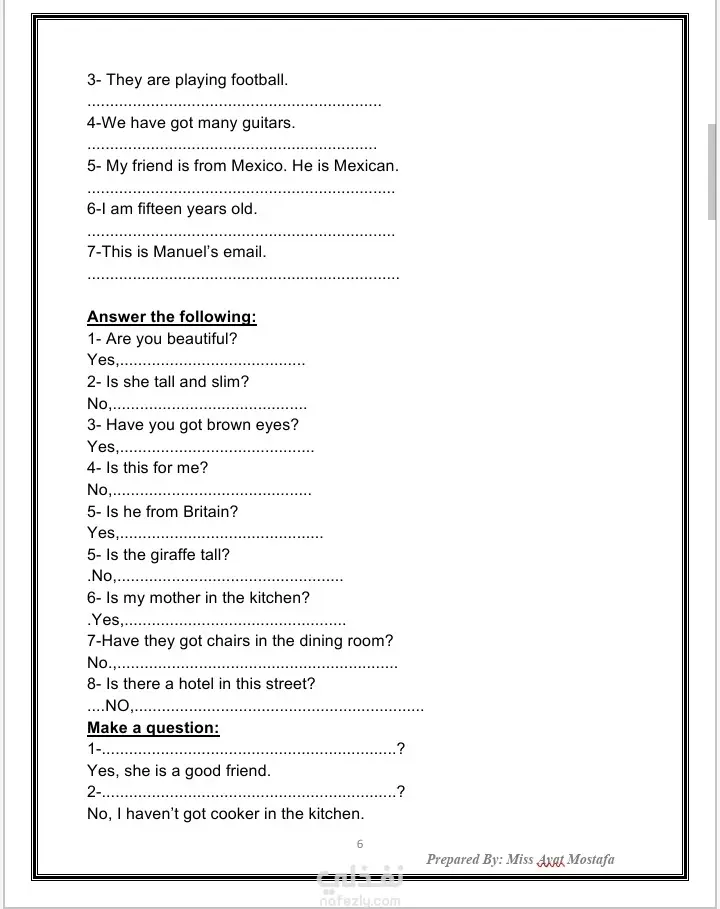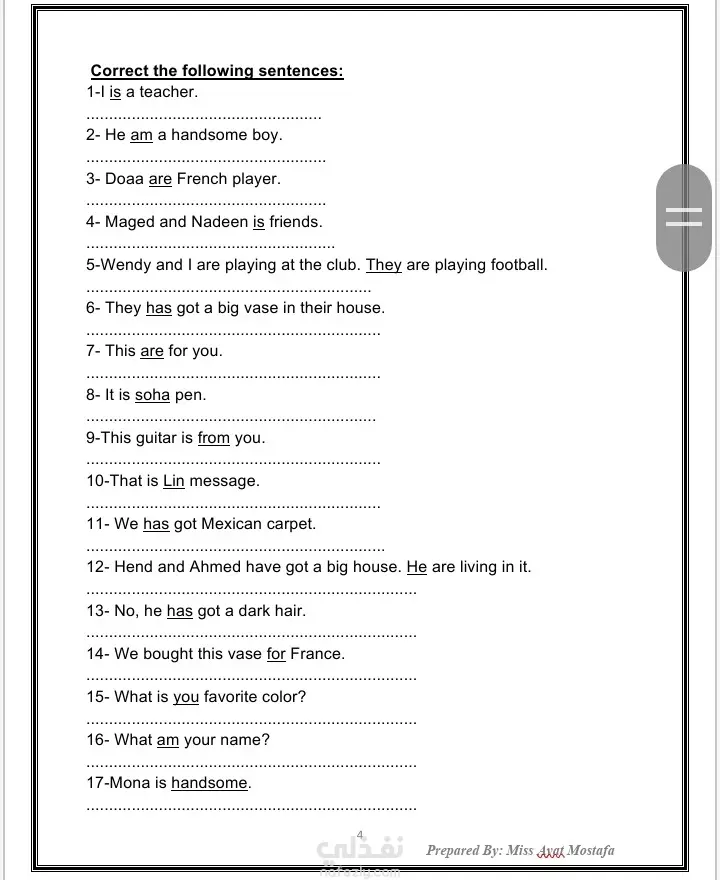 كتابة ملف خاص باللغة الإنجليزية مع المحافظة علي التصحيح اللغوي القواعد علامات الترقيم تنسيق الجمل تنسيق المسافات بين الأسئلة وبعضها