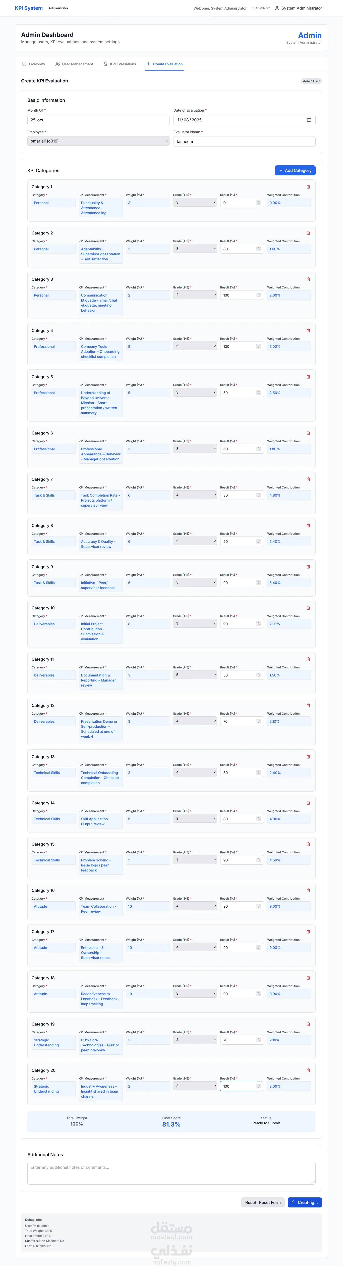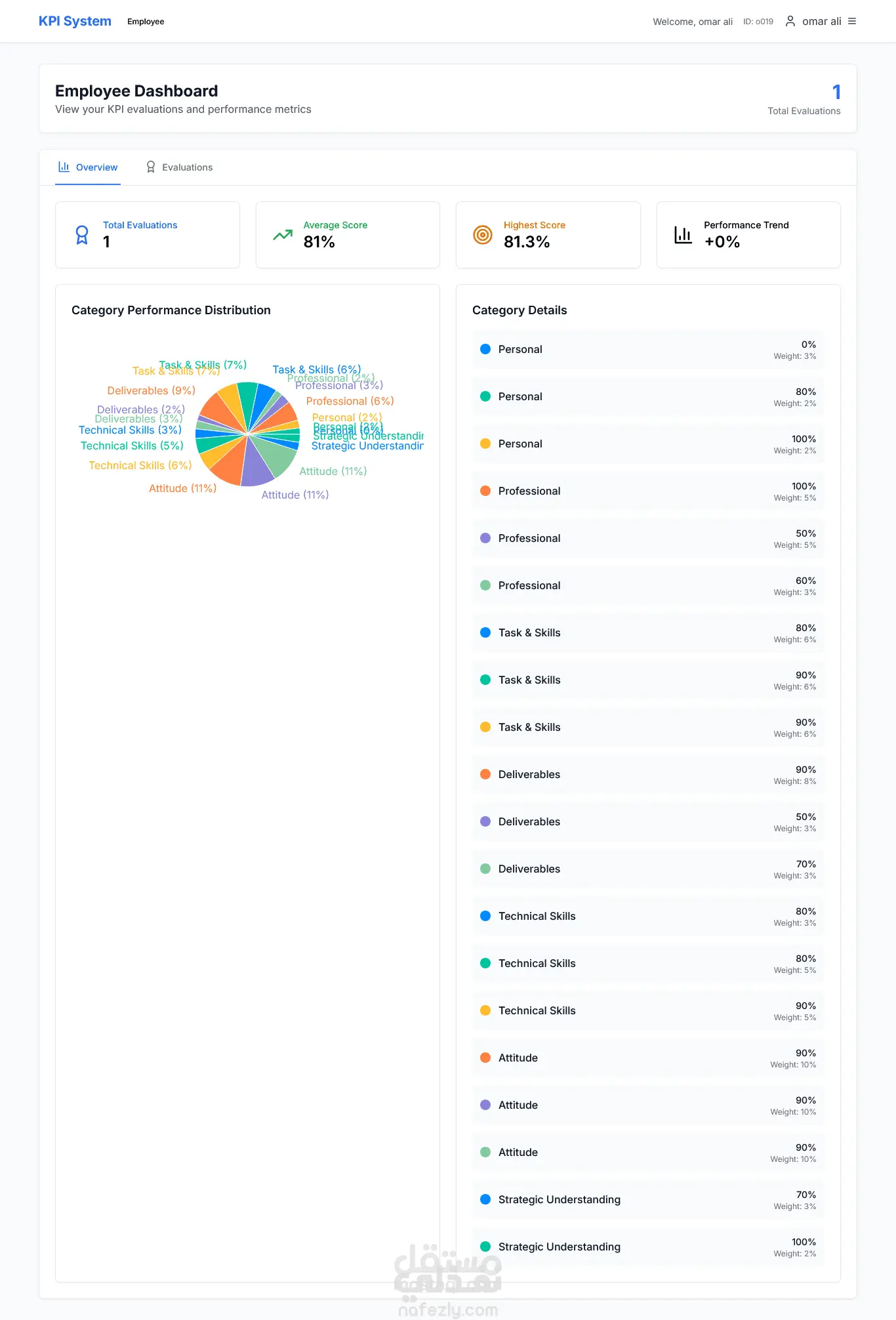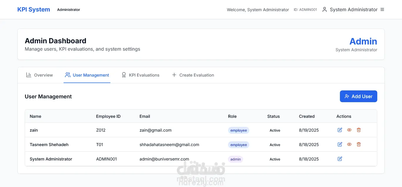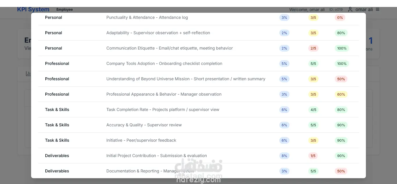 نظام رقمي متكامل لتتبع أداء الموظفين والفرق في المؤسسات، مع لوحات تحكم تفاعلية، إدارة أدوار وصلاحيات متعددة، وأدوات إدخال بيانات وتجربة سهلة للمسؤولين والموظفين. واجهة حديثة بـ Next.js وخلفية بـ Express + MongoDB، مع تصميم متجاوب وسهل الاستخدام. أهم المميزات: لوحات تحكم تفاعلية تعرض الأهداف والتقدم باستخدام رسوم بيانية. إدارة أدوار وصلاحيات متعددة للمسؤولين والمديرين والموظفين. أدوات لإدخال بيانات تجريبية وإعادة تهيئة الحسابات بسهولة. واجهة مستخدم حديثة ومتجاوبة مع Tailwind CSS. بنية قابلة للتوسعة وصيانة سهلة بين الواجهة والخادم. الفائدة للمؤسسة: مركزية ووضوح البيانات، وشفافية كاملة في تقييم الأداء. متابعة مستمرة للأهداف والإنجازات بدلاً من التقارير الدورية. تشغيل سهل في بيئة تطوير أو إنتاج دون تعقيدات تقنية.