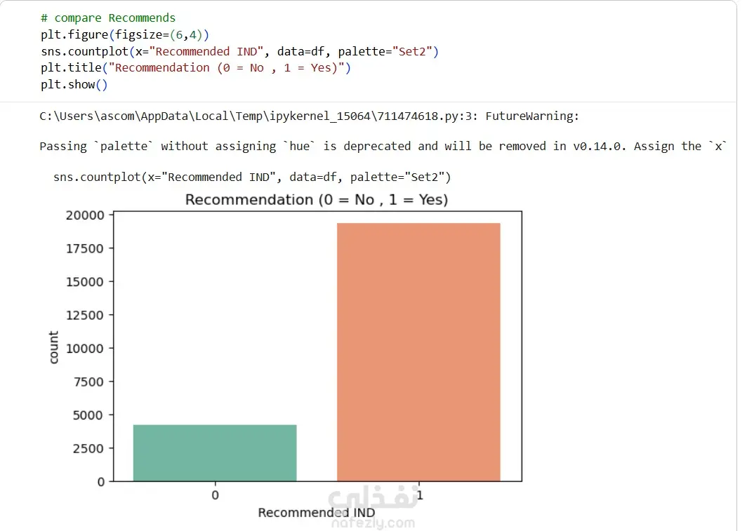 قمت بتحليل بيانات مراجعات عملاء متجر إلكتروني للملابس النسائية (Women’s Clothing E-Commerce Reviews) باستخدام Python وأدوات تحليل البيانات. شمل العمل:
