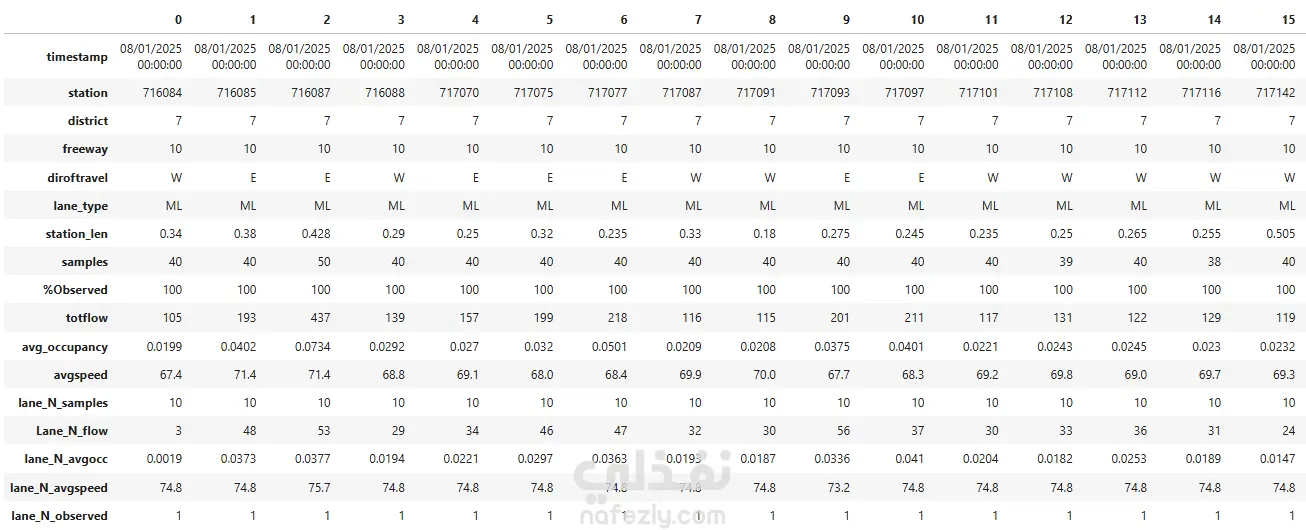 في هذا العمل قمت بالعمل على ملف بيانات مرورية خام بصيغة .txt يحتوي على قراءات حساسات الطريق (توقيت، محطة، اتجاه السير، السرعة، التدفق… إلخ) في صورة قيم مفصولة بفواصل وغير مرتّبة. الخطوات التي قمت بها شملت: قراءة الملف النصي الخام ومعالجة طريقة الفصل بين القيم. ترتيب الأعمدة وتسميتها بشكل واضح مثل: timestamp, station, district, avg_speed, totflow … تحويل أنواع البيانات (مثل التاريخ والوقت، القيم العددية). معالجة القيم المفقودة والصفرية غير المنطقية. تجهيز جدول نهائي منظّم يمكن استخدامه في التحليل الإحصائي أو بناء نماذج تعلم آلي لاحقًا. النتيجة كانت ملف بيانات نظيف ومنسّق يسهل التعامل معه واستخراج المؤشرات منه بدل الاعتماد على الملف الخام المعقّد.