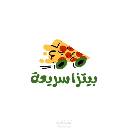 🍕 شعار أخضر وأصفر بسيط لمطعم بيتزا – بيتزا سريعة 🌿💛