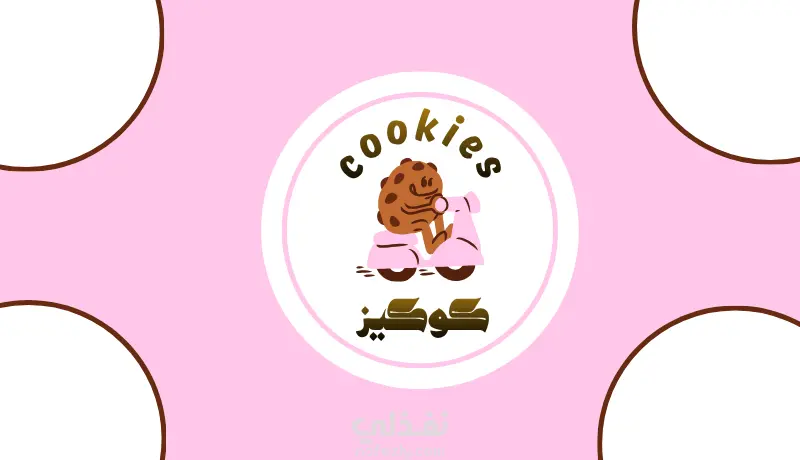 تصميم شعار احترافي لمتجر حلويات يركز على الألوان الجذابة والمبهجة مثل الوردي، البني ، والكريمي، مع عناصر تصميم تمثل الكوكيز والحلوى.