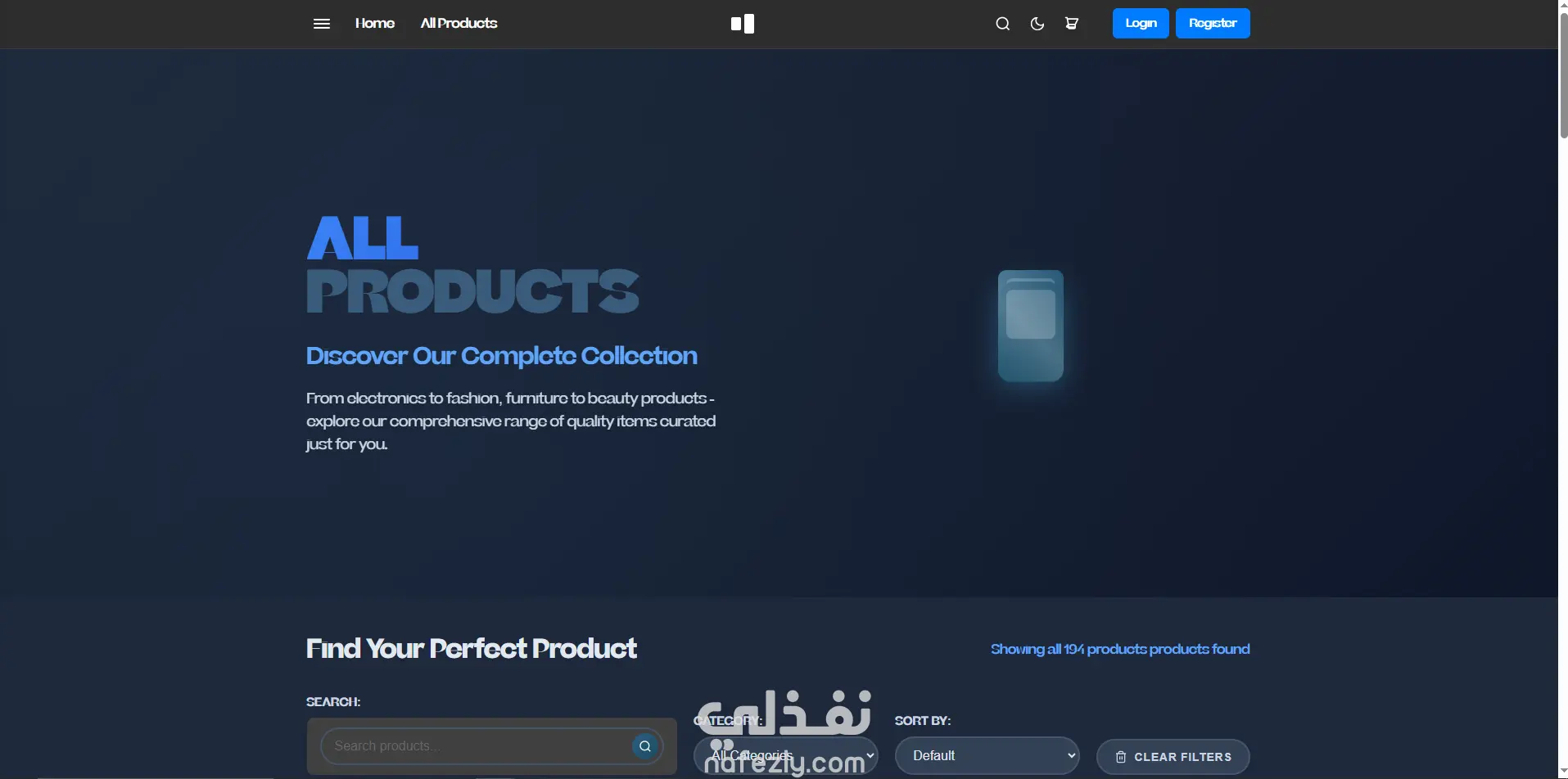 A fully responsive e-commerce website designed with HTML5, CSS3, and Vanilla JavaScript, with dynamic products.