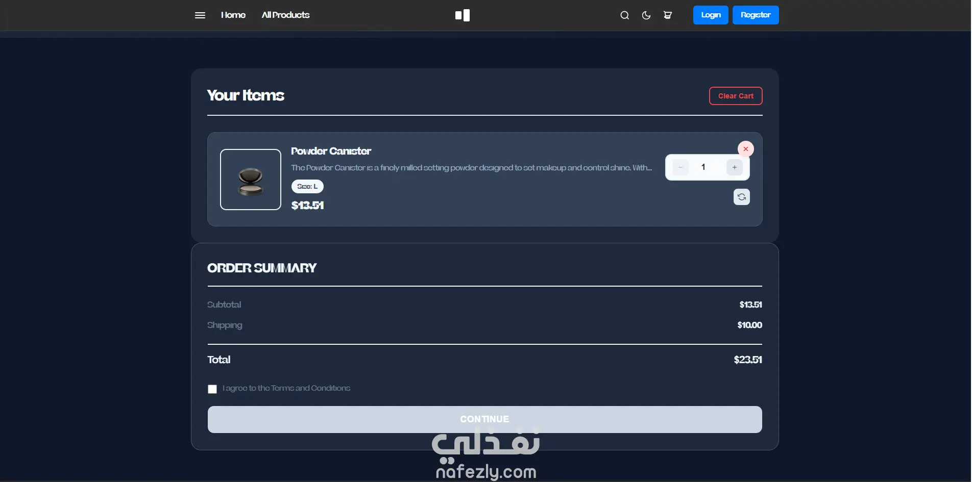 catalog, powerful cart management with local storage, interactive checkout procedure, and toggle with dark mode.