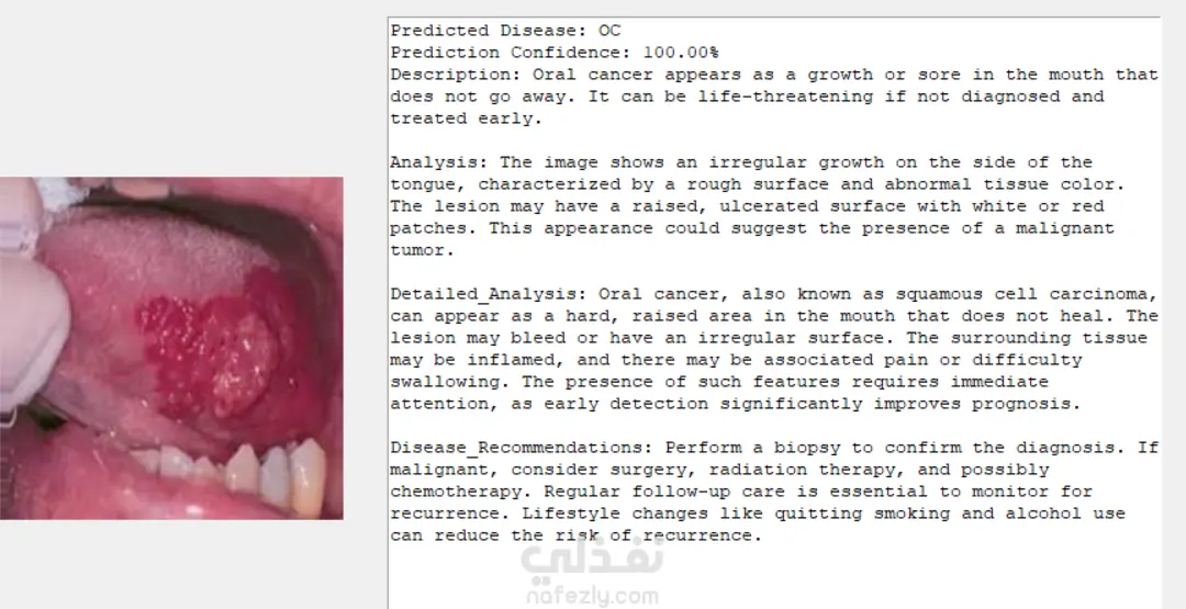 Developed an AI-based system capable of detecting and classifying seven common oral diseases using deep learning and computer vision techniques. The model utilizes MobileNetV2, a lightweight and efficient CNN architecture, to analyze oral cavity images and identify visual symptoms such as discoloration, ulcers, or abnormal patches. This project aims to assist dentists and healthcare professionals in early diagnosis and automated screening of oral diseases through image-based analysis. The dataset includes thousands of annotated oral images categorized into seven classes. Detected Diseases: Oral Cancer Mucosal Conditions Gum Disease (Periodontal Disease) Candidiasis Cold Sores (Herpes Simplex) Oral Lichen Planus Oral Thrush Key Features: Multi-class classification of oral diseases High model accuracy and efficient inference time Image preprocessing and data augmentation applied User-friendly interface for clinical testing