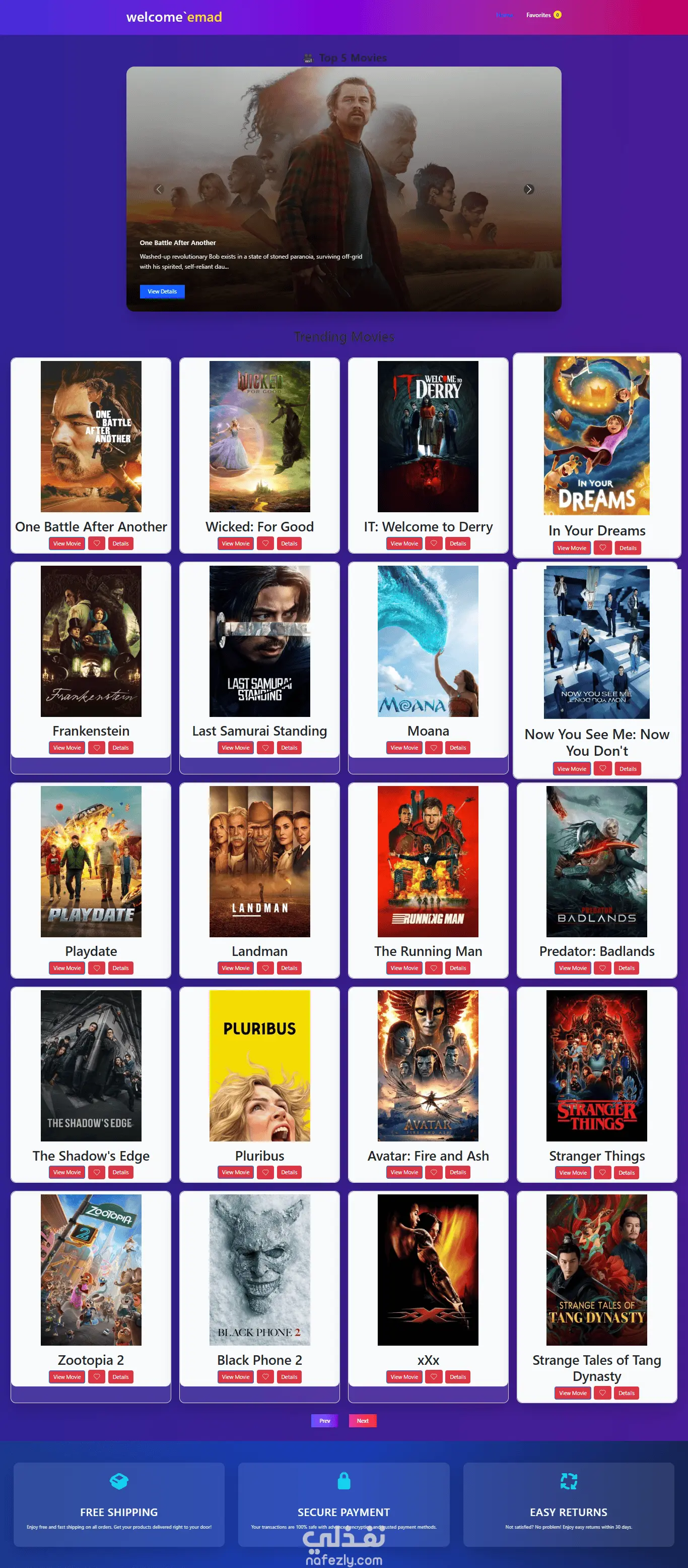 تطبيق يعرض مجموعة من الافلام بشكل جذاب ومتجاوب