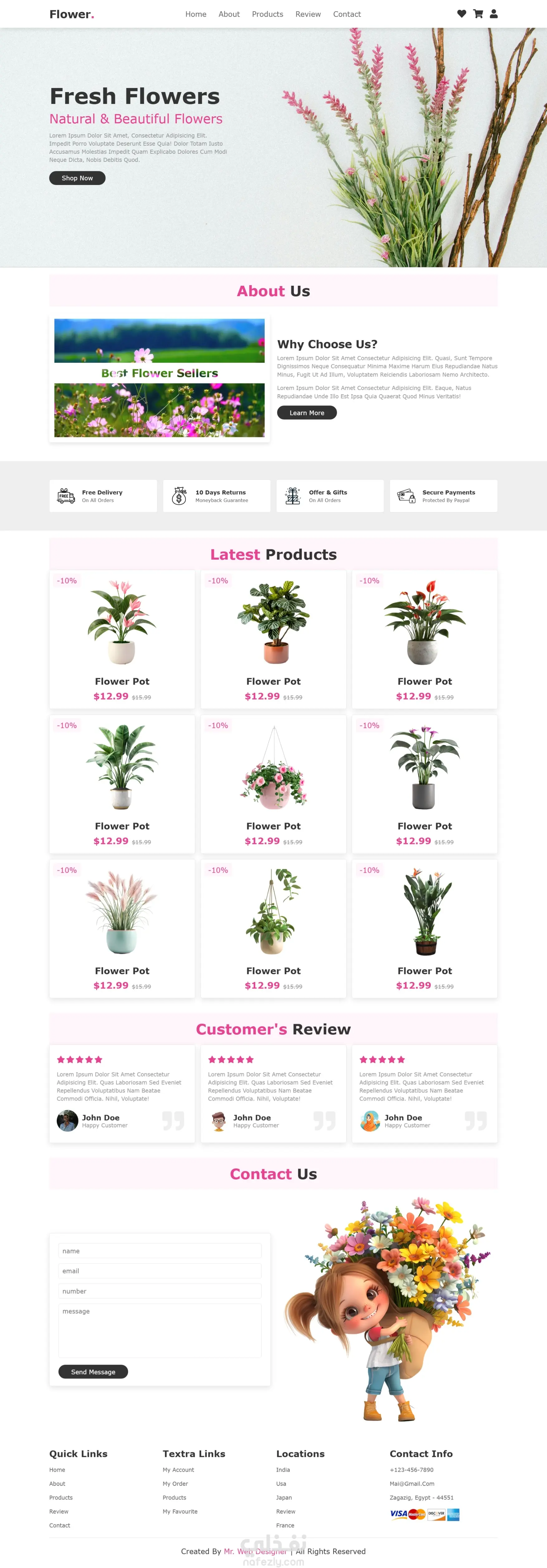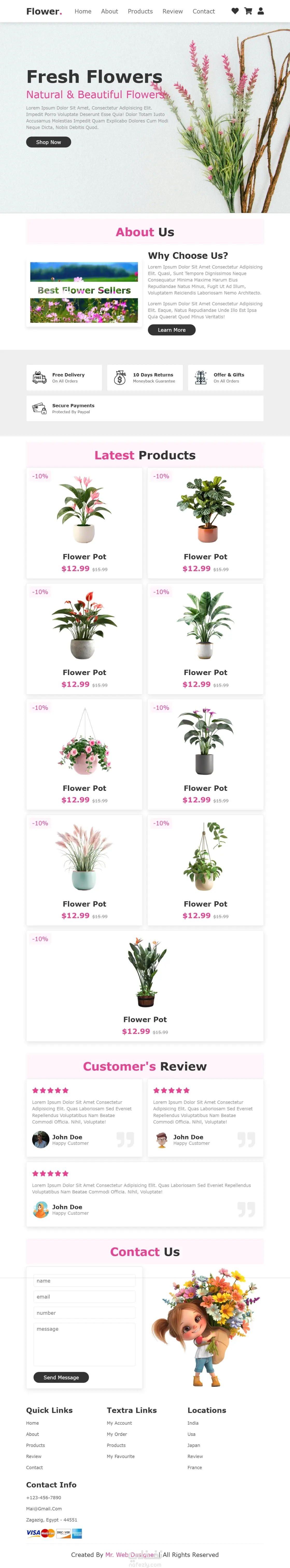 تطوير واجهة أمامية (HTML/CSS) لموقع بيع زهور احترافي