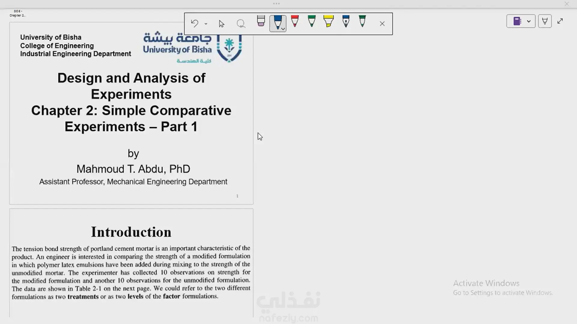 شرح مادة تصميم التجارب الاحصائية - الهندسة الصناعية - جامعة بيشا