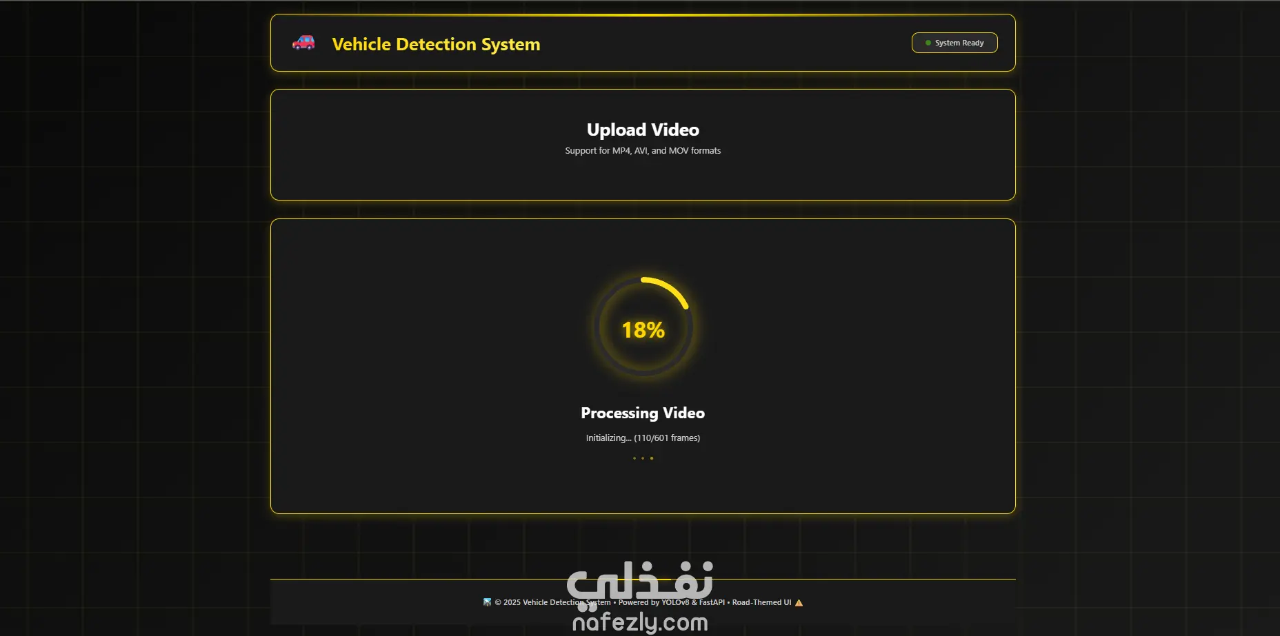نظام متكامل لكشف وتتبع المركبات في الفيديوهات باستخدام تقنيات الذكاء الاصطناعي والتعلم العميق. المميزات الرئيسية: ✅ كشف وتتبع السيارات في الفيديوهات بدقة عالية ✅ رسم مناطق مخصصة (ROI) لتحديد مناطق العد ✅ عد السيارات التي تمر عبر المناطق المحددة ✅ واجهة ويب تفاعلية سهلة الاستخدام ✅ معالجة متعددة للفيديوهات (batch processing) ✅ تحميل النتائج كفيديو معالج التقنيات المستخدمة: Backend: Python, FastAPI, OpenCV AI Model: YOLOv8 للكشف عن الأجسام Tracking: SORT Algorithm Frontend: HTML, CSS, JavaScript Video Processing: MoviePy, NumPy حالات الاستخدام: مراقبة حركة المرور إحصاء المركبات في الطرق أنظمة المواقف الذكية تحليل كثافة المرور النتائج: دقة كشف عالية معالجة سريعة للفيديوهات واجهة سهلة وبديهية نتائج قابلة للتحميل والمشاركة