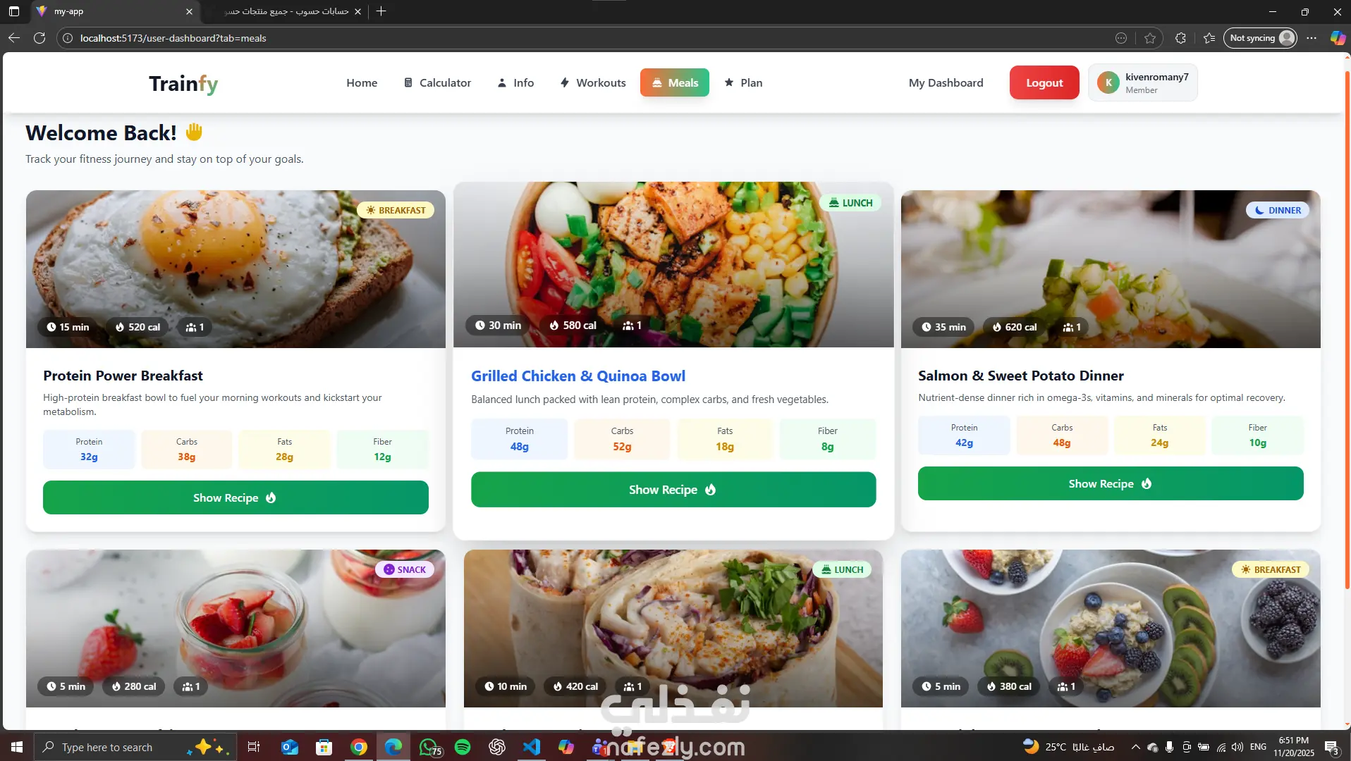 موقع جيم فيه اله حاسبه بتحسب الكرب و البروتين و و كل حاجه جسمك محتاجها بتتحسب ع حسب سنك و طولك و وزنك و فيه داشبورد بتابع تمارينك و في قسم للتمارين و قسم الوجبات فيه الوجبات و طريقه التحضير و الوجبه فيها كان بروتين و كام سعره حراريه