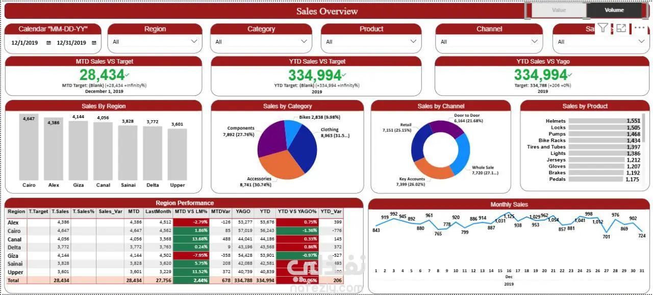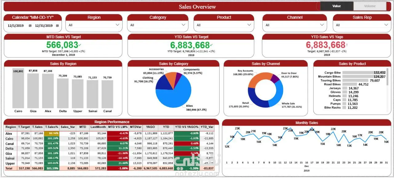 • إجمالي المبيعات الشهرية والسنوية، ومقارنتها بالأهداف المحددة.