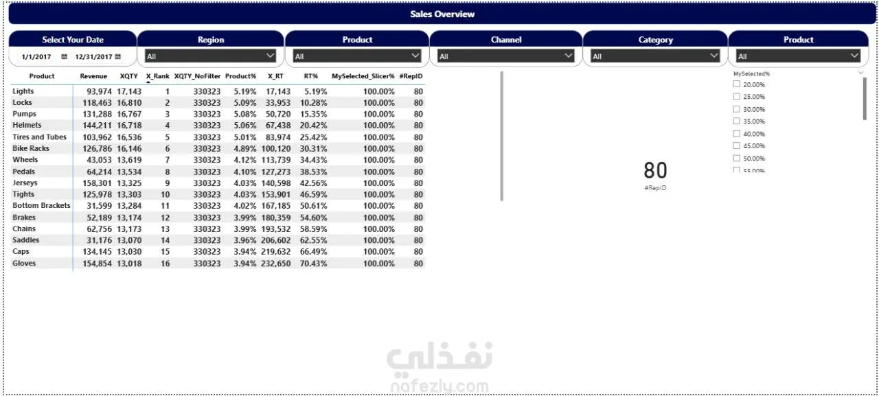 • مبيعات حسب الفئة (زي Bikes, Clothing) وحسب المنتج.