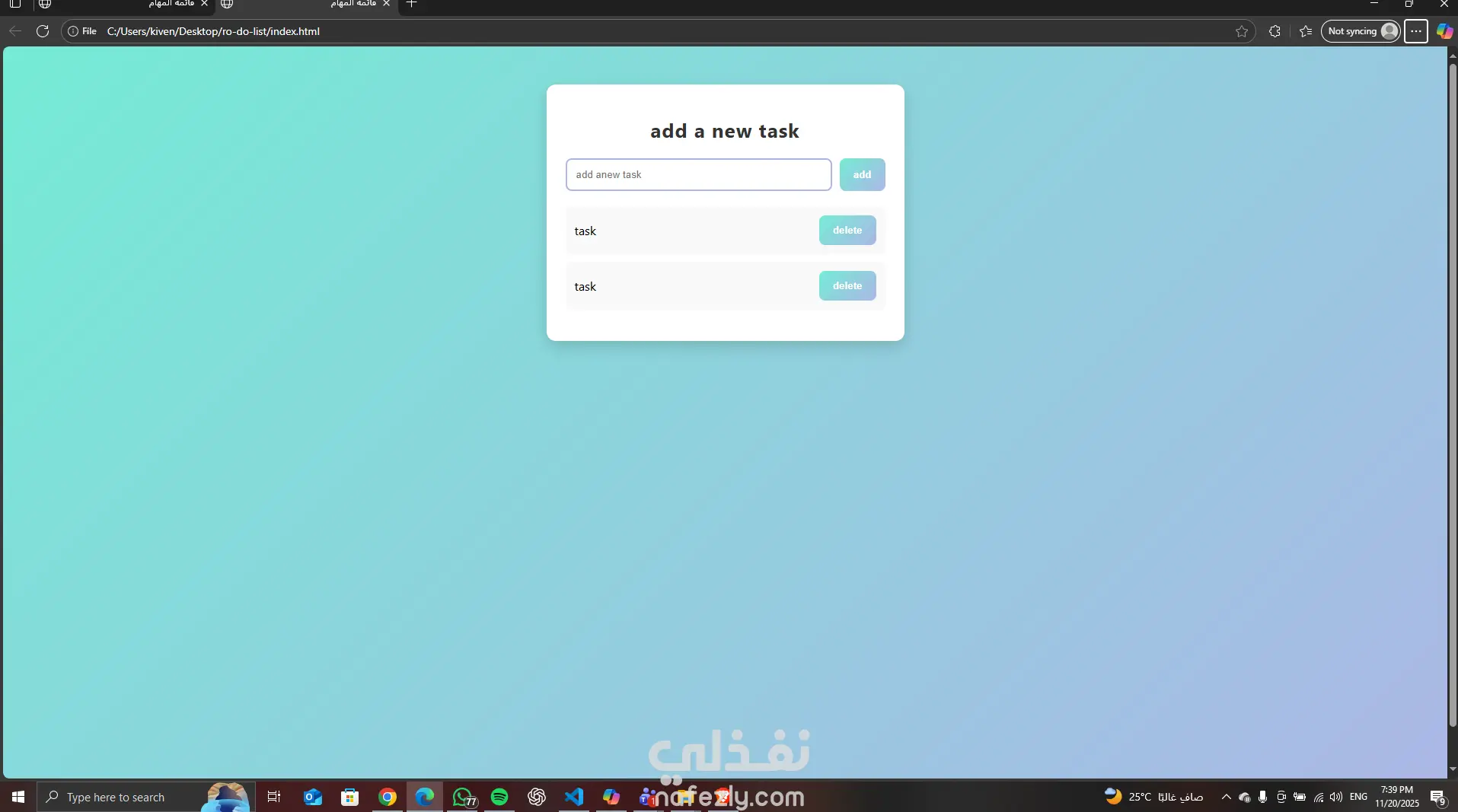 to do listبيرتب المهام و يقوم ب اضافه المهام الجديده