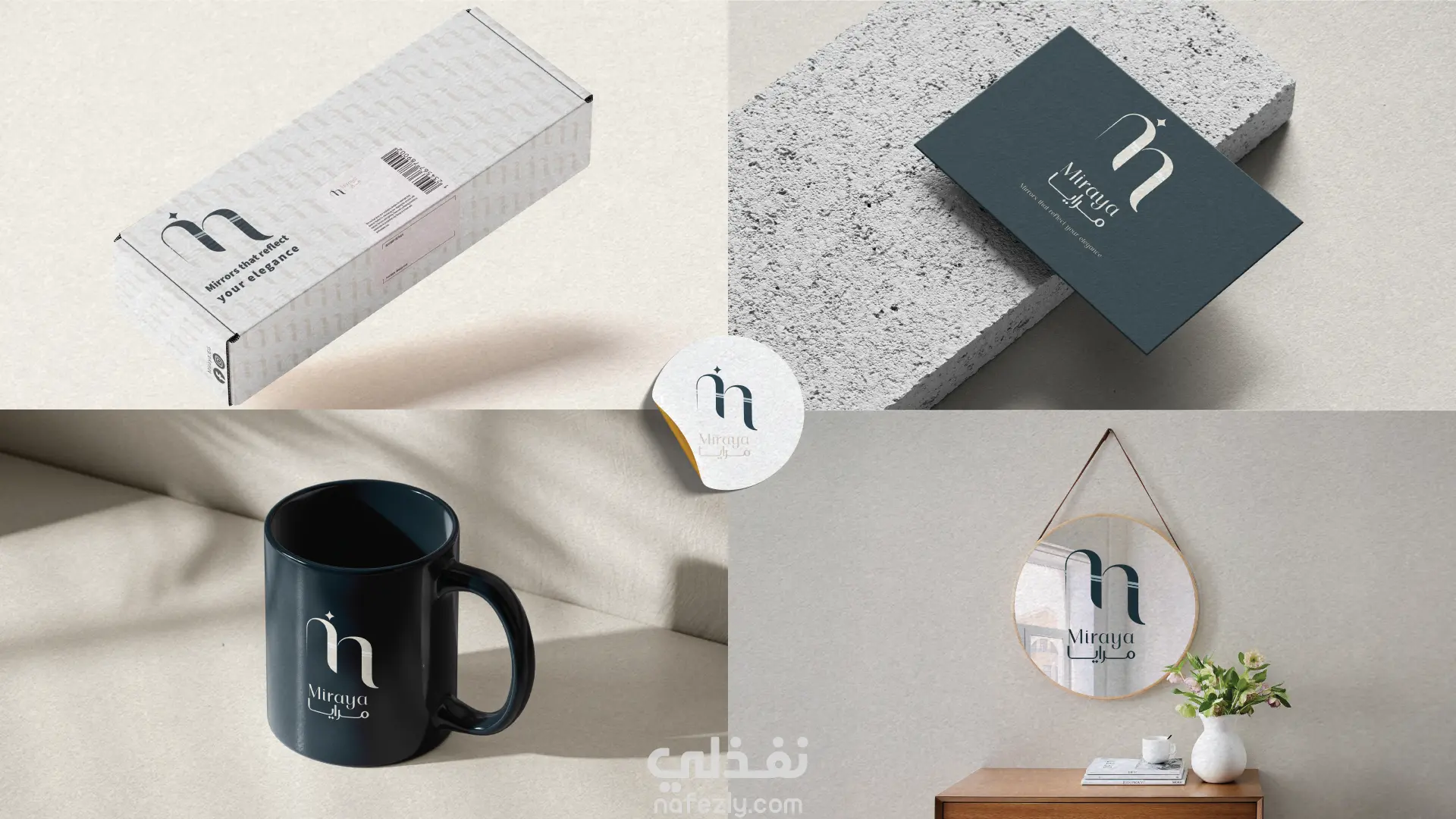 تم تصميم تلك الهوية لتدل على الفخامة و الرقي الهوية مبنية على شكل حرف m وهو الحرف الاول من اسم المتجر و الخطوط البيضاء توضح انعكاسات الزجاج استخدمت الالوان البترولي و البيج ليعطي شعور بالفخامة و الرقي استخدمت خطوط بسيطة و رفيعة لتعكس فخامة المتجر و اناقته الشعار مرن و يمكن استخدامه في وسائط مختلفة و مناسيب و ابعاد مختلفة