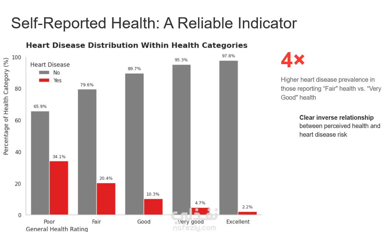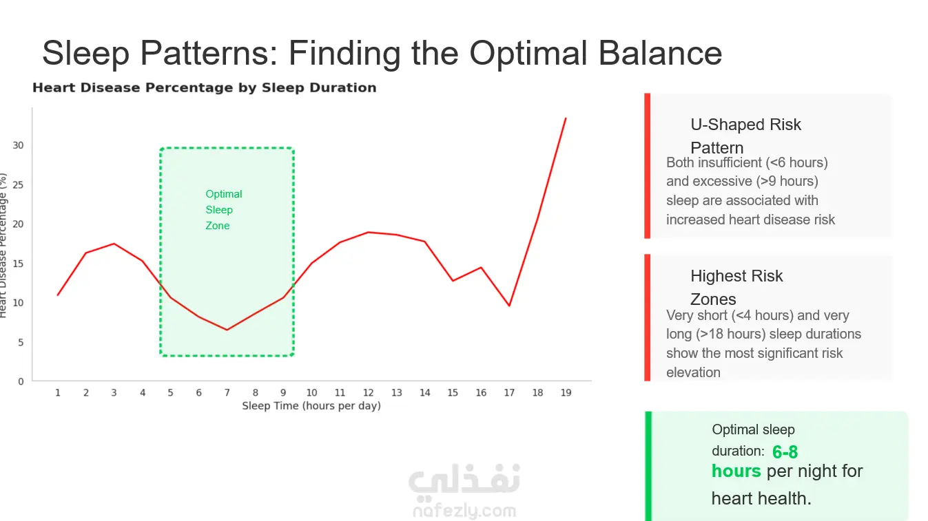 قمت بتحليل بيانات طبية تتعلق بأمراض القلب لفهم العوامل المؤثرة (العمر، النشاط البدني، النوم، مؤشر كتلة الجسم، إلخ). تنظيف البيانات والتعامل مع القيم المفقودة. التحليل الاستكشافي (EDA) لاستخراج العلاقات. بناء نماذج تنبؤية باستخدام الانحدار اللوجستي وشجرة القرار. تقديم تقارير ورسوم بيانية توضح النتائج والعوامل الأكثر تأثيراً. النتيجة: توفير رؤية تساعد الأطباء والباحثين على تحديد المخاطر بشكل أوضح.