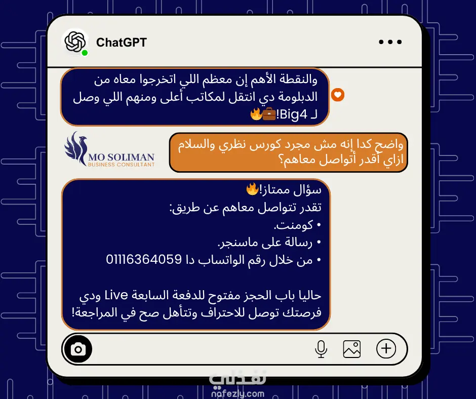 عملت على إعداد حملة تسويقية للإعلان عن كورس يُقدم لطلاب وطالبات كلية تجارة عملتُ على ابتكار الفكرة، المحتوى، والتصميم