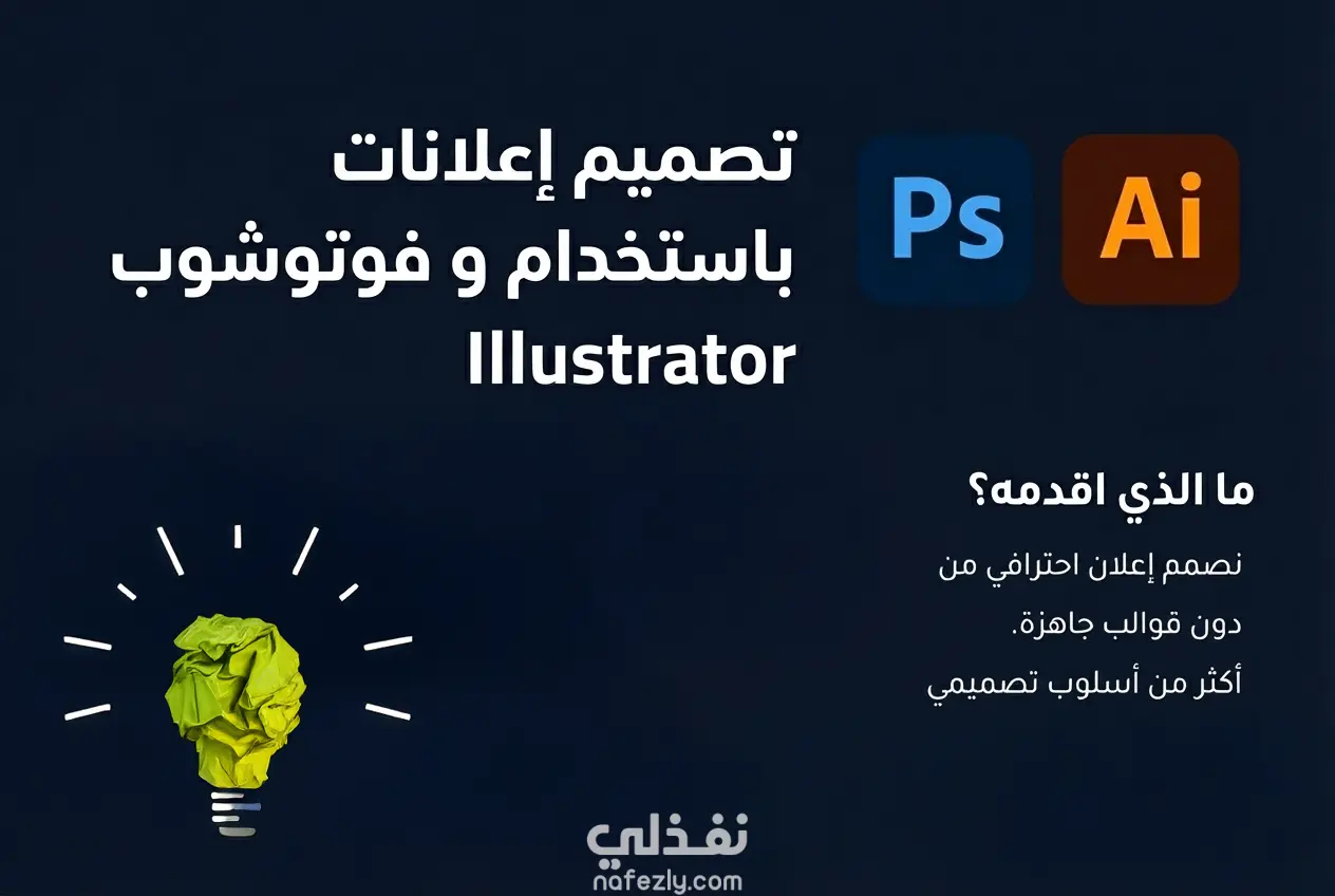 أقدّم خدمة تصميم إعلانات احترافية باستخدام برامج Adobe Photoshop و Adobe Illustrator بجودة عالية وبدقة تناسب الاستخدام في السوشيال ميديا، الطباعة، أو أي منصة إعلانية أخرى.