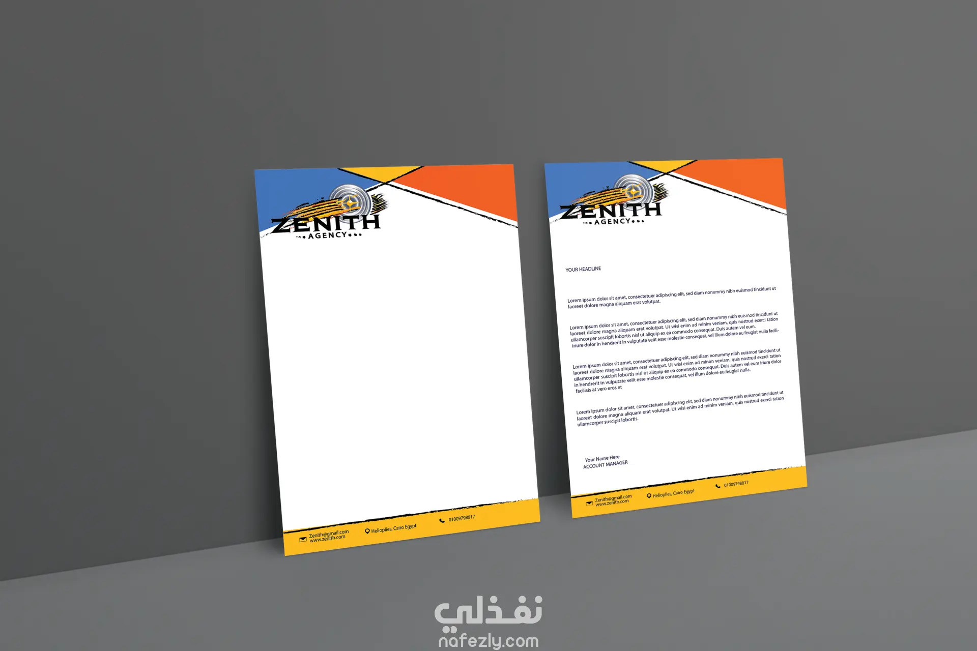 إرسال النصوص والمعلومات التي ستوضع على الخطاب (اسم الشركة، الشعار، العنوان، البريد الإلكتروني، رقم الهاتف، أي معلومات أخرى)