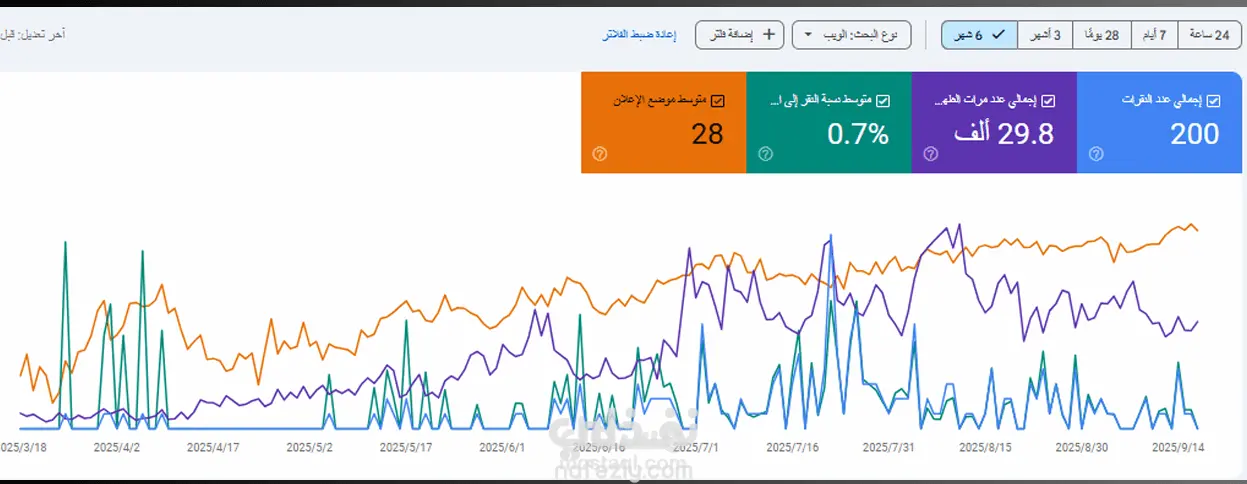نمو تدريجي في الانطباعات والنقرات من Google.
